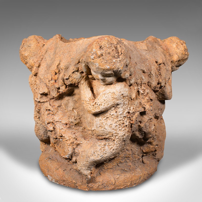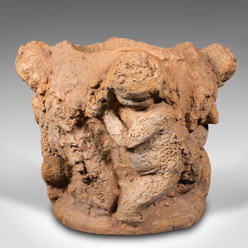 Large Vintage Decorative Cherub Jardiniere, Italian, Stone, Planter, Putti, 1950