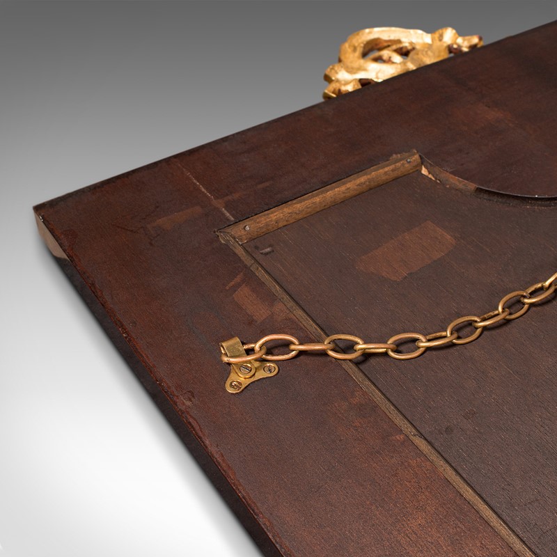 Set within the upper edge, the bevelled glass skilfully follows the curvature of the inset medallion