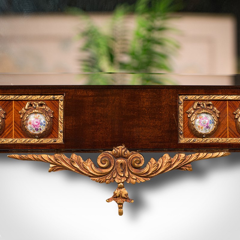 Each corner accentuated with gilt metal flowerheads, the lower rail hosting a decorative mount