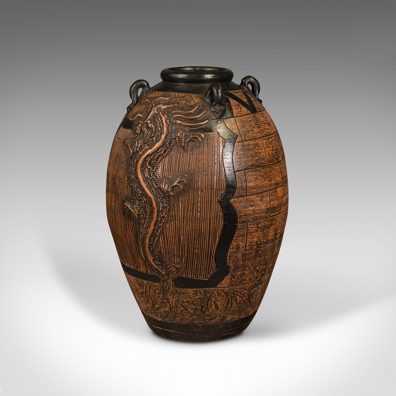 Large Vintage Planter, Chinese, Terracotta, Decorative Floor Vase, Mid Century