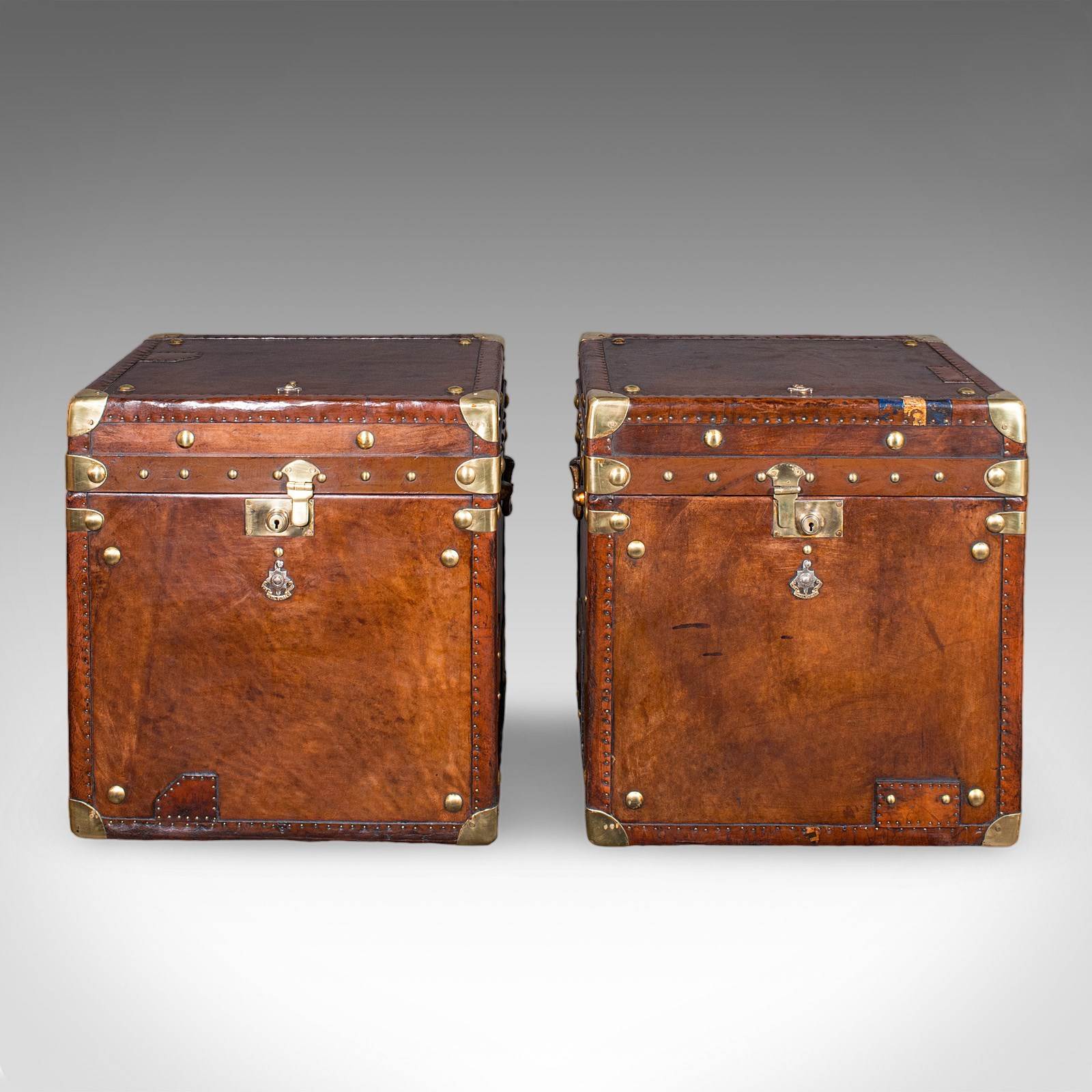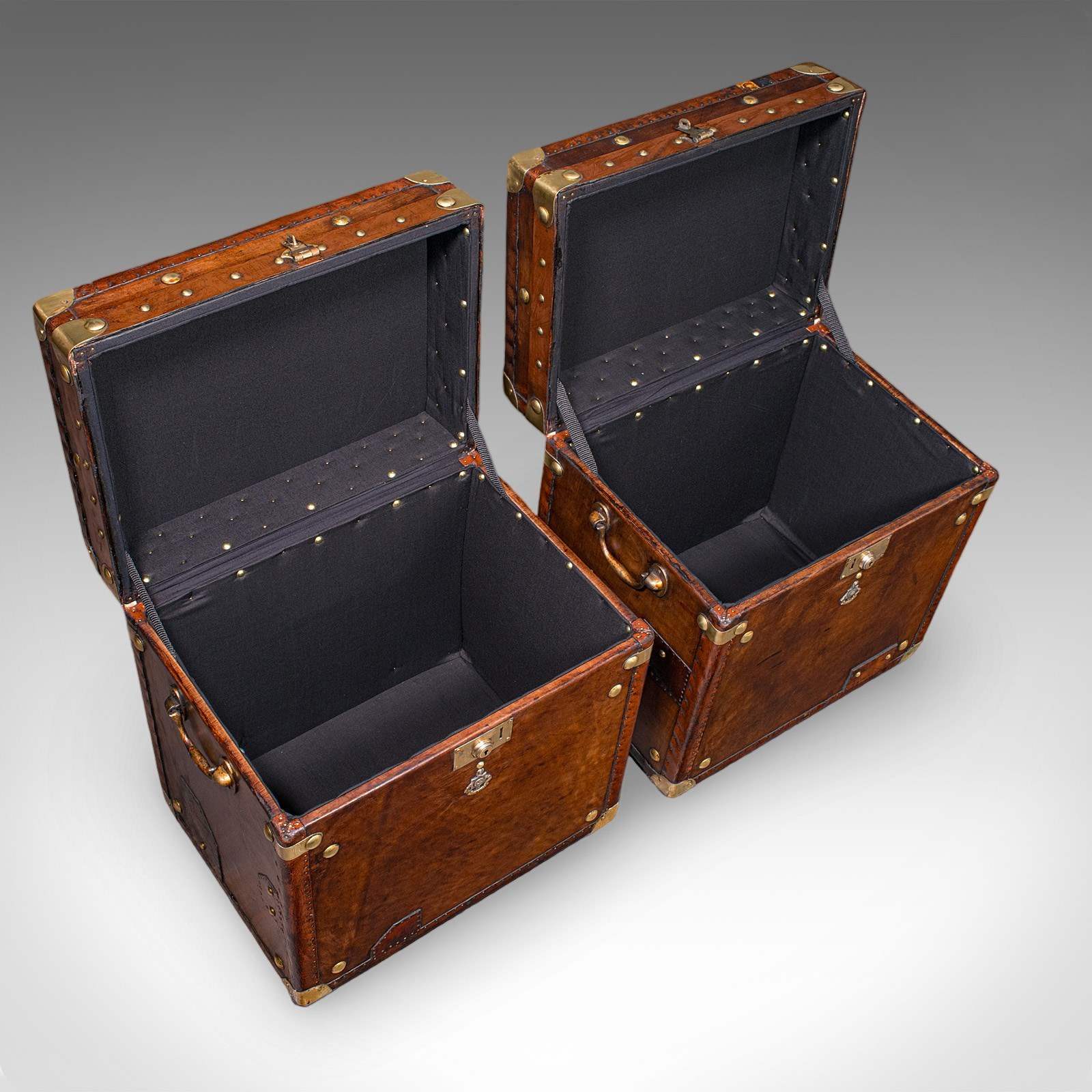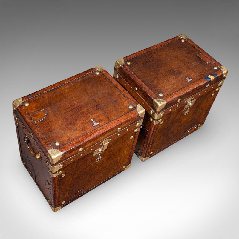Pair, Late Vintage Officer's Campaign Luggage Cases, English, Bedside Nightstand