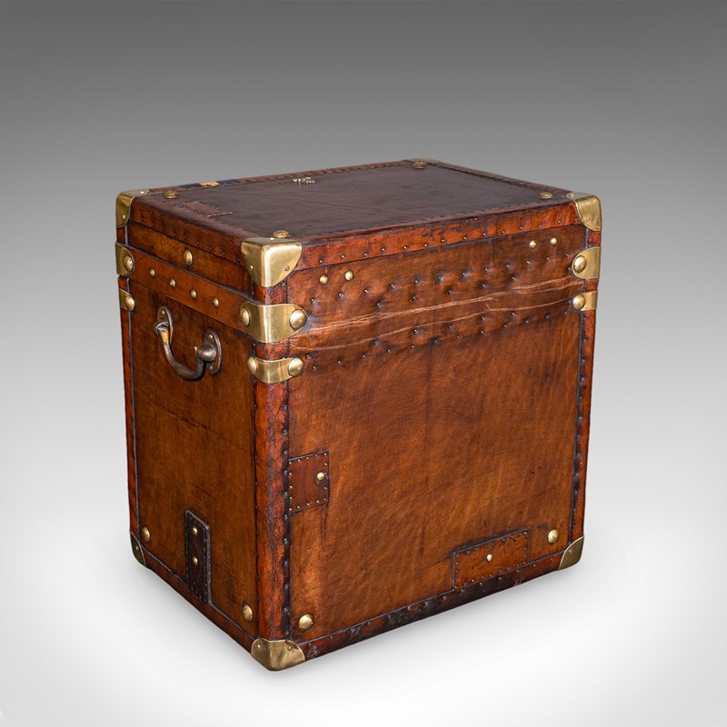 Robust brass drop handles adorn either side, for ease of carriage