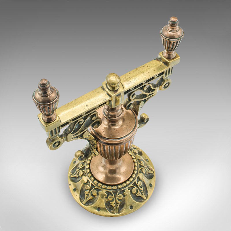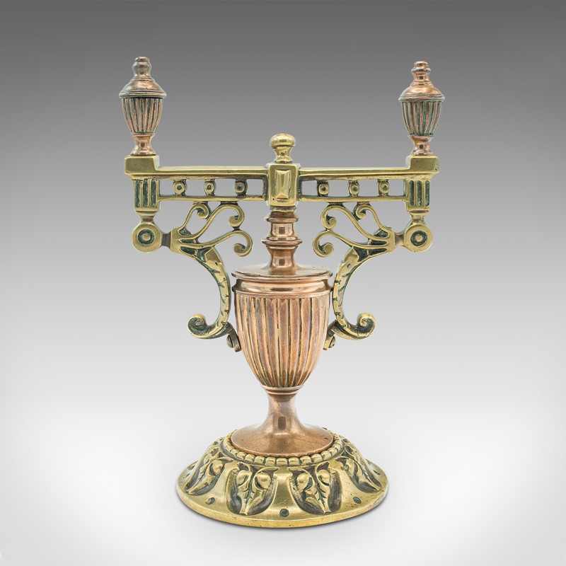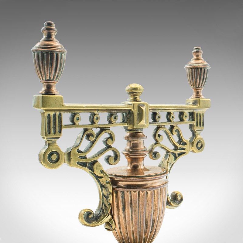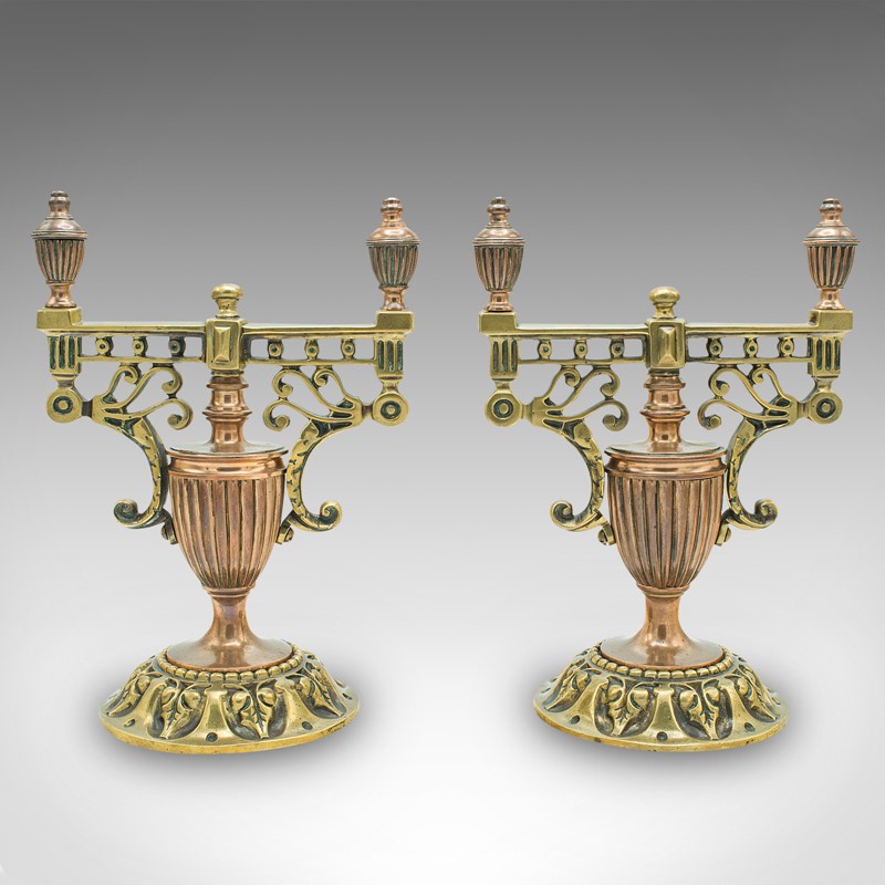 Pair Of Antique Decorative Tool Rests, Grand Tour, Brass, Fireside, Victorian