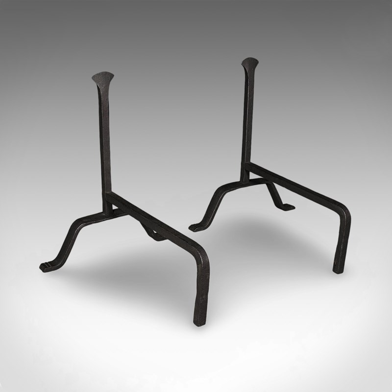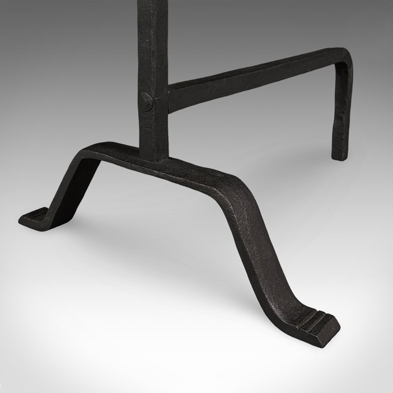 Pair Of Antique Fire Dogs, English, Wrought Iron, Fireplace Andiron, Victorian