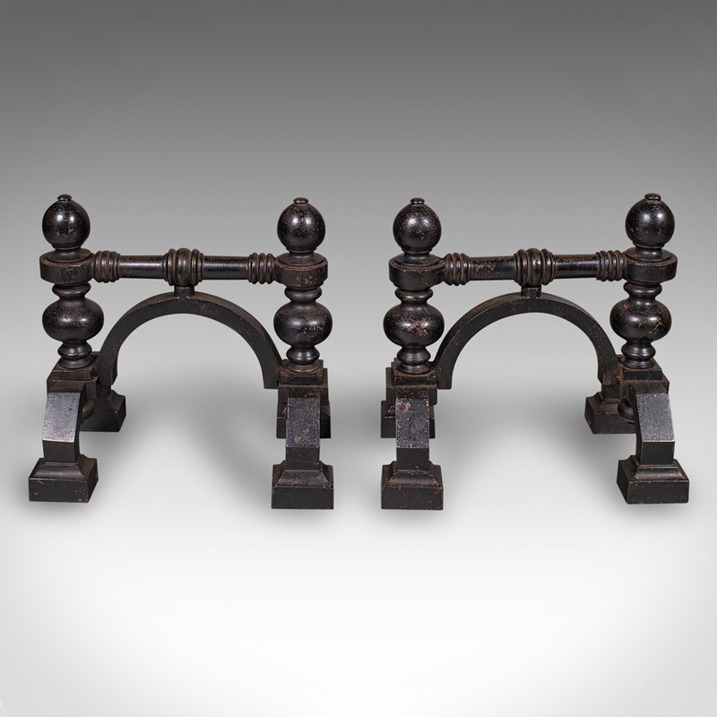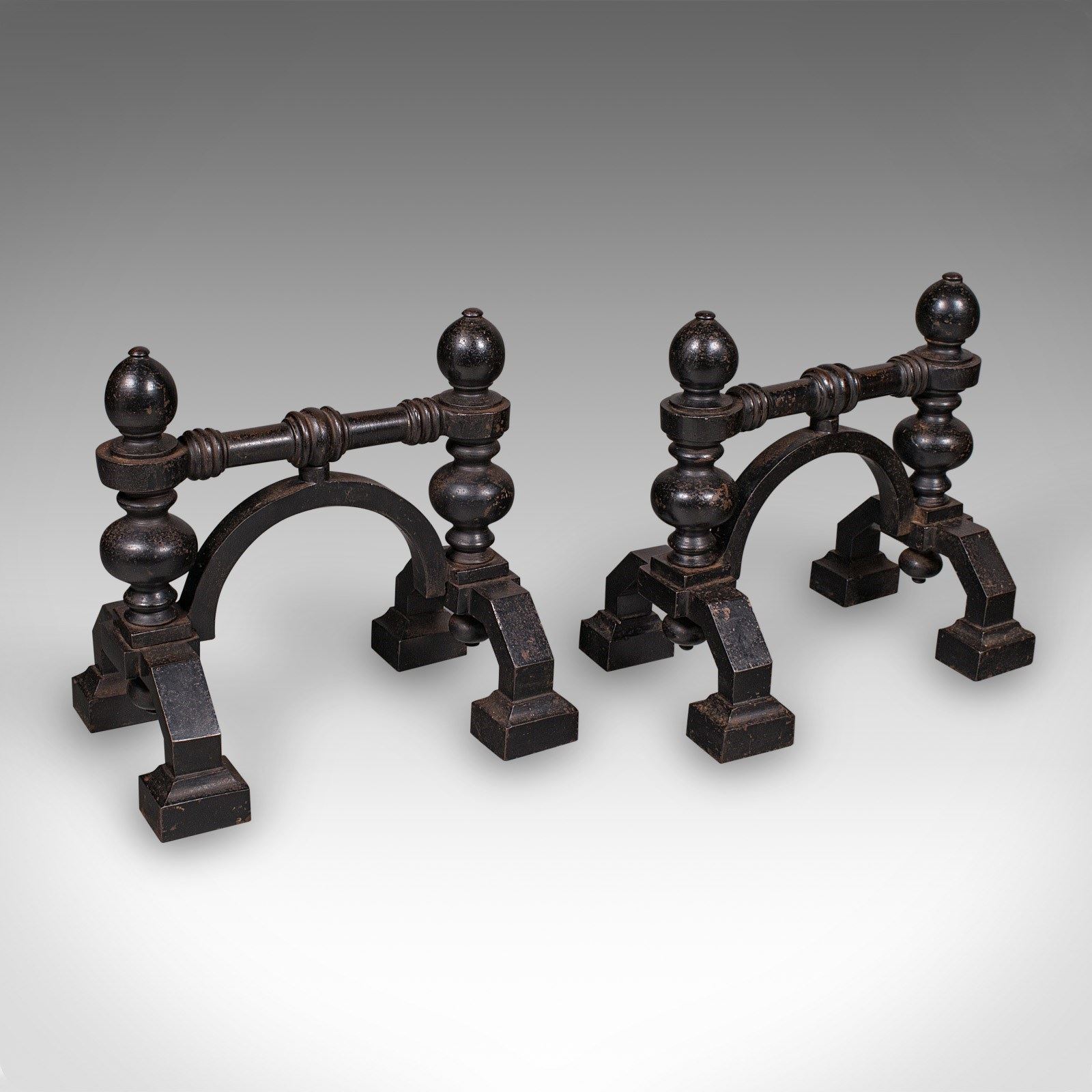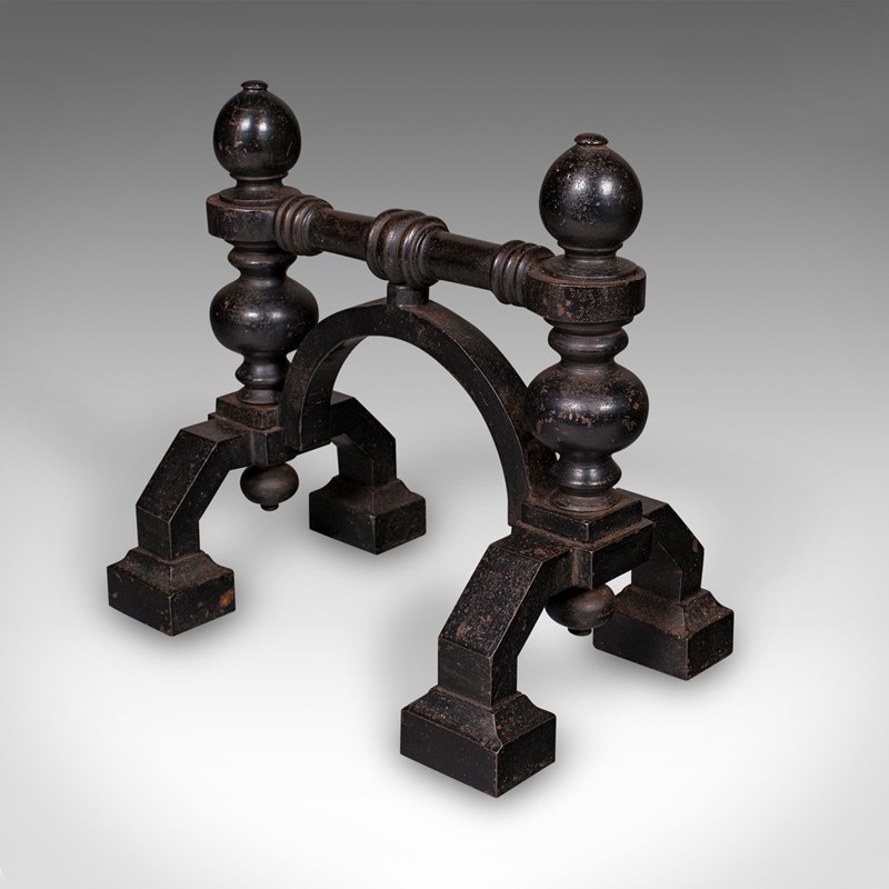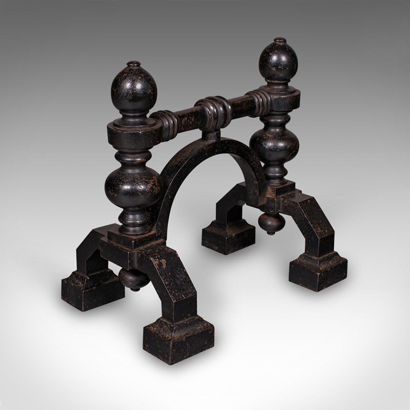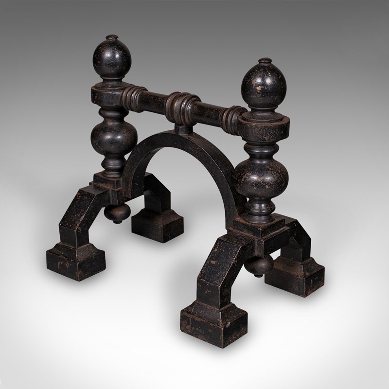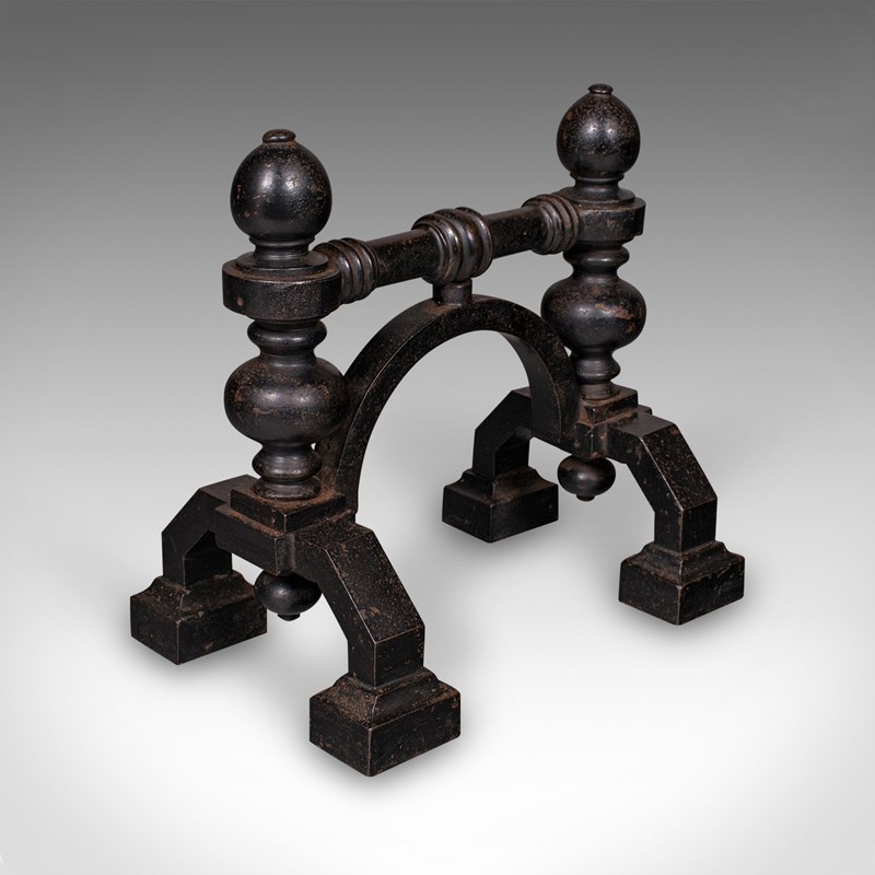Pair Of Antique Fireside Tool Rests, English, Cast Iron, Hearth Stand, Victorian