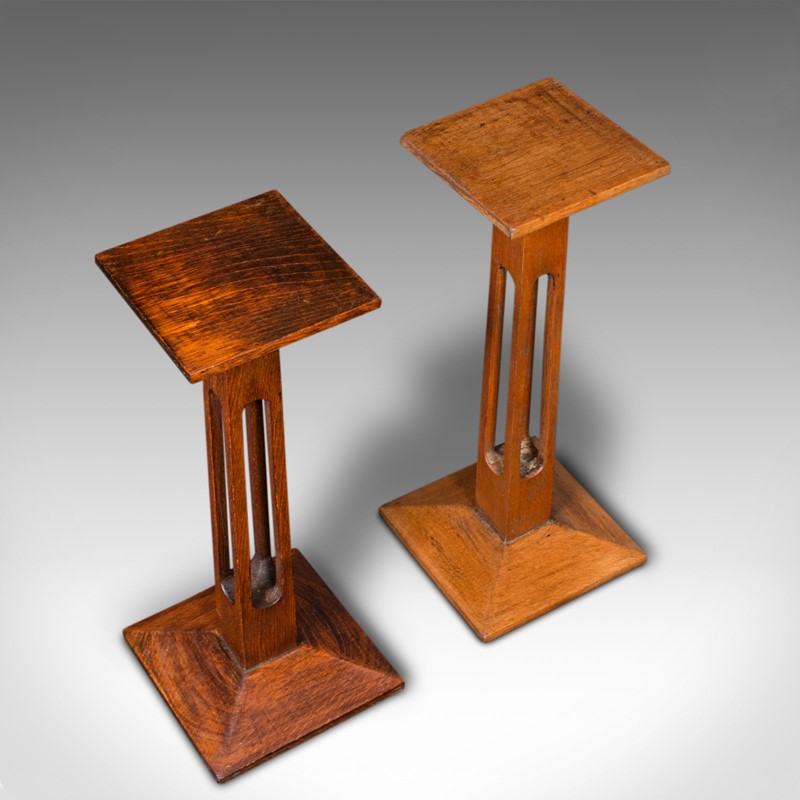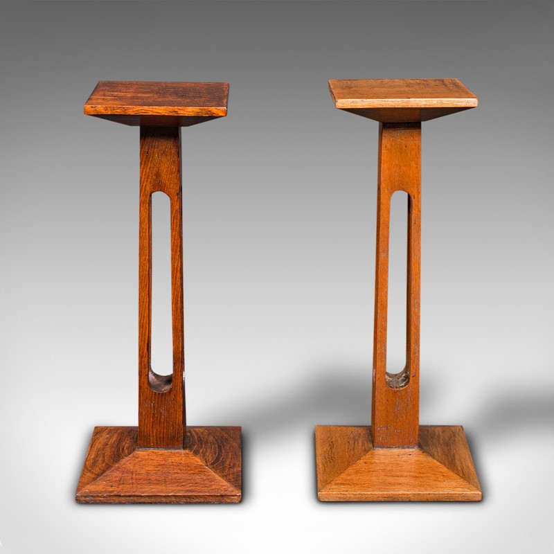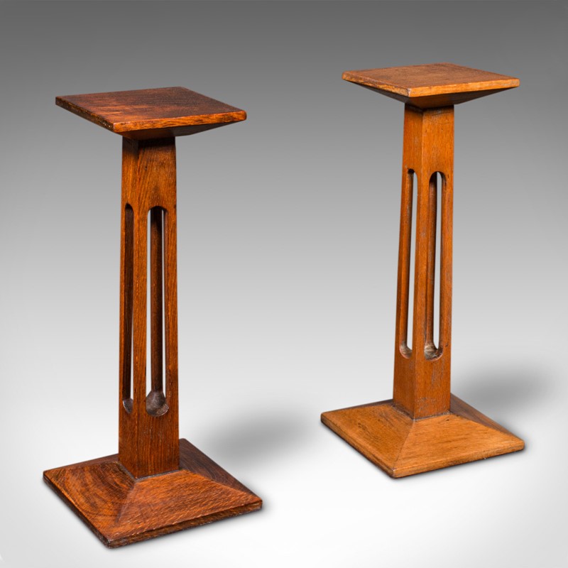 Pair Of Antique Statue Stands, English, Oak, Pedestal, Torchere, Edwardian, 1910