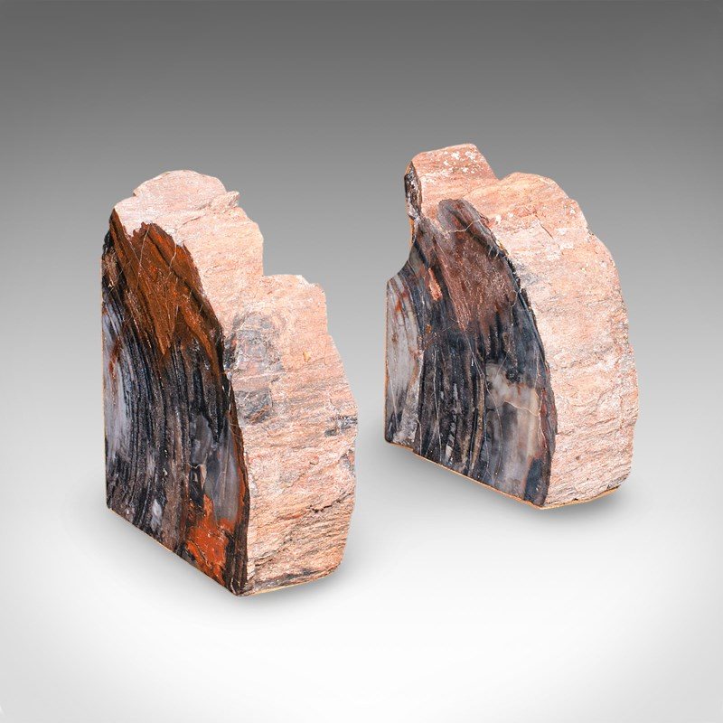Pair Of Prehistoric Large Volume Bookends, Petrified Wood, Book Rest, Geological