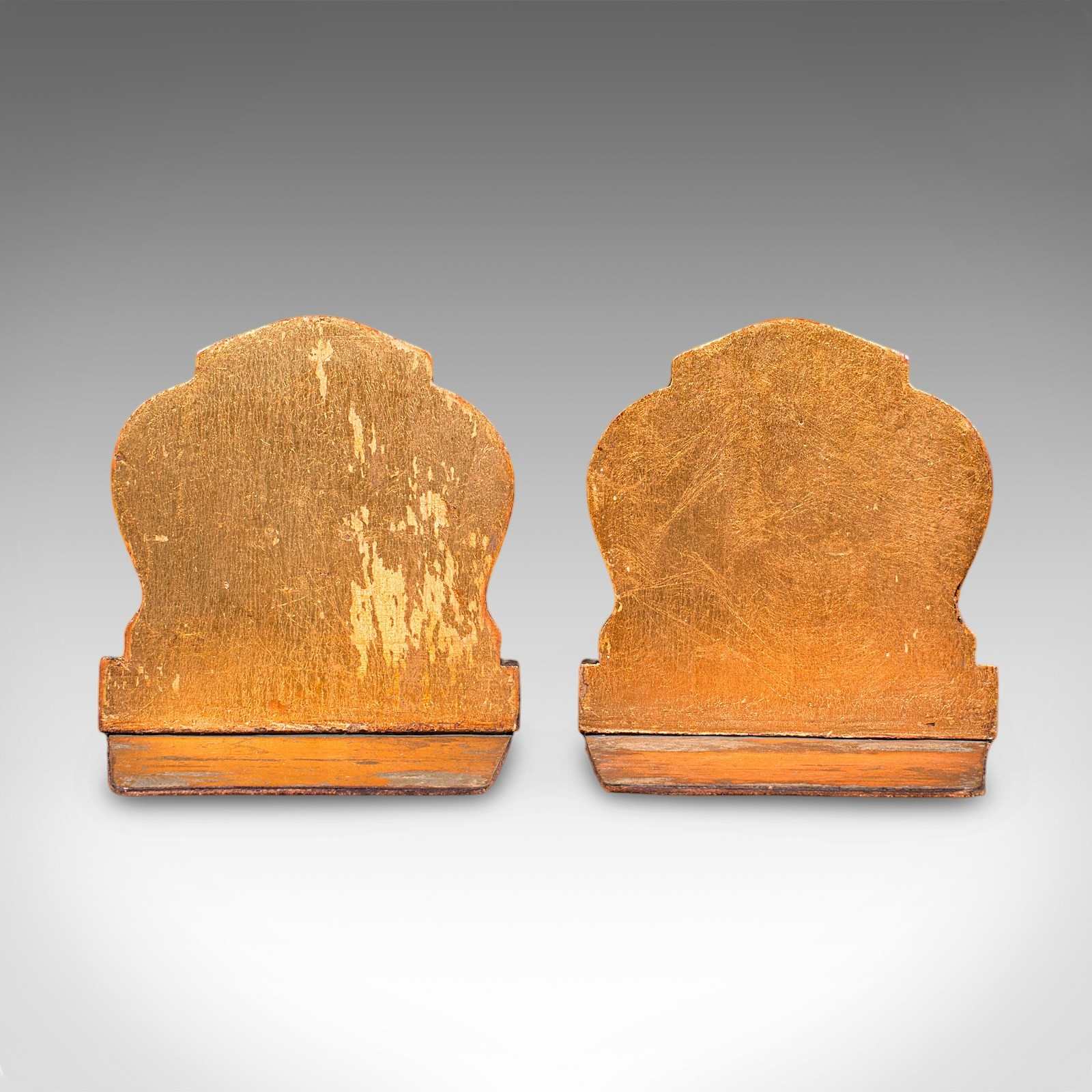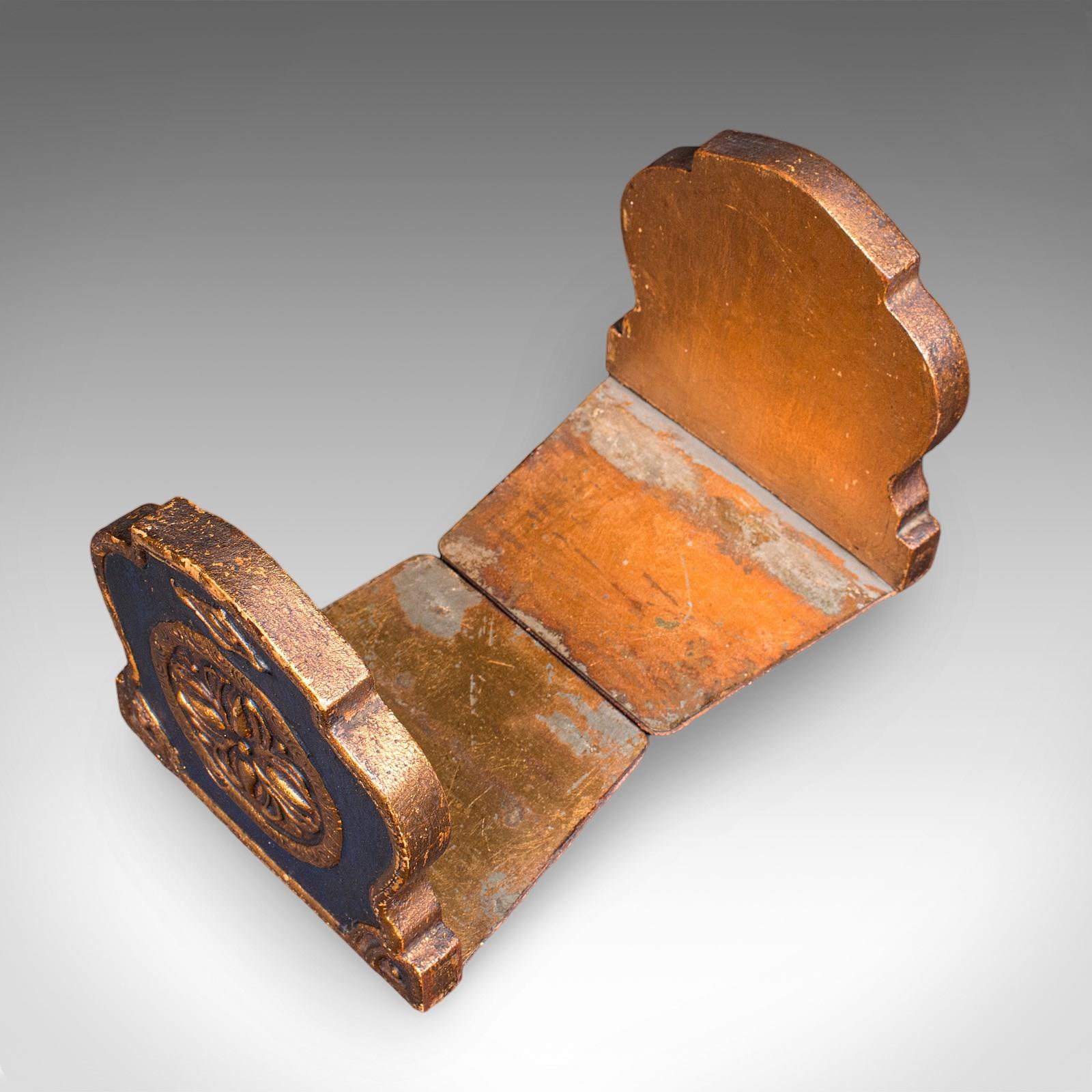 Pair Of Small Vintage Baroque Revival Bookends, Italian, Giltwood, Book Rest