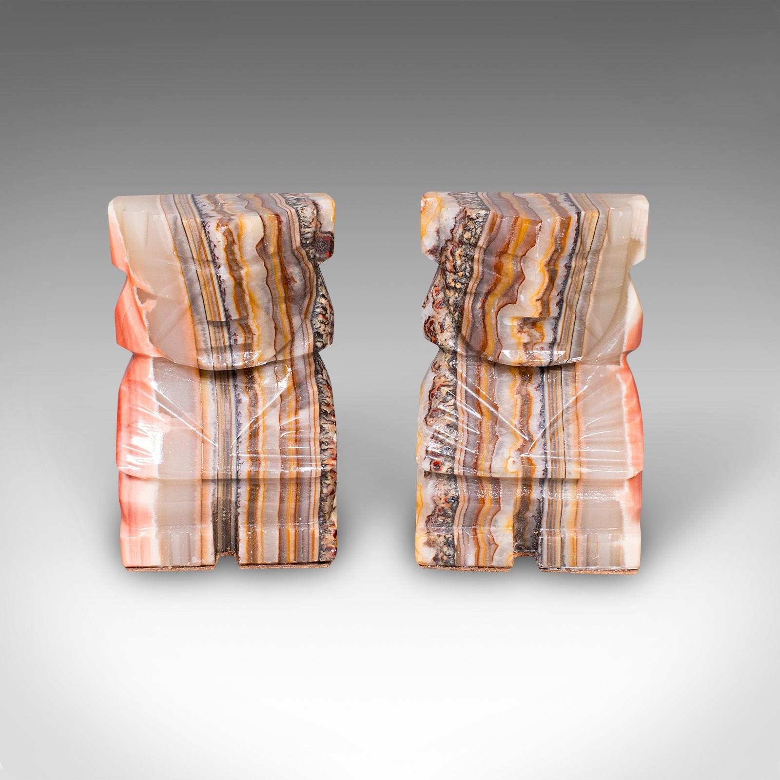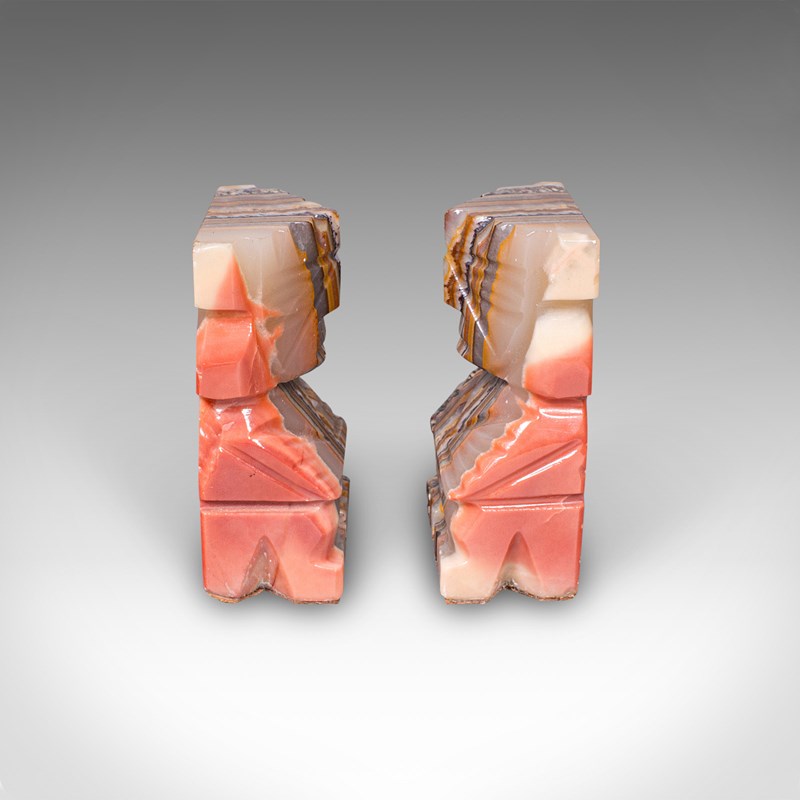 These Art Deco banded agate Aztec bookends offer both practical function and decorative presence, making them a fine choice for collectors of Art Deco, tribal or South American art. Delivered ready for the home.