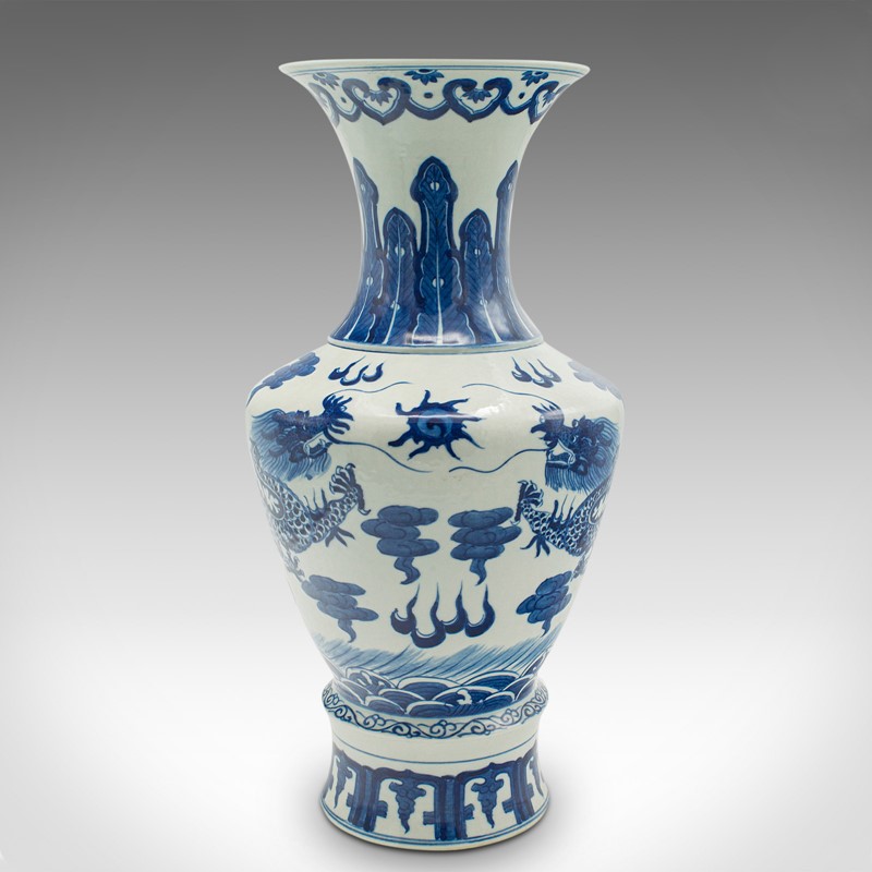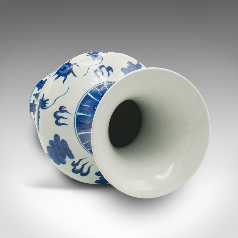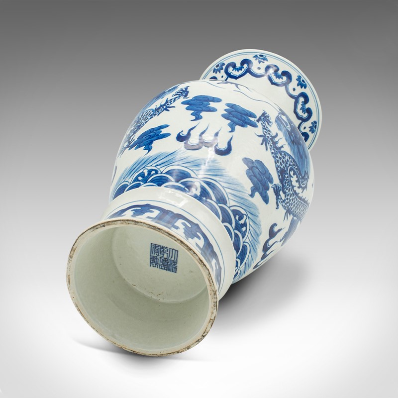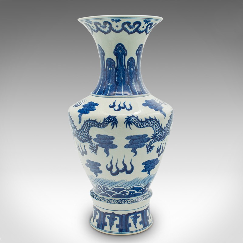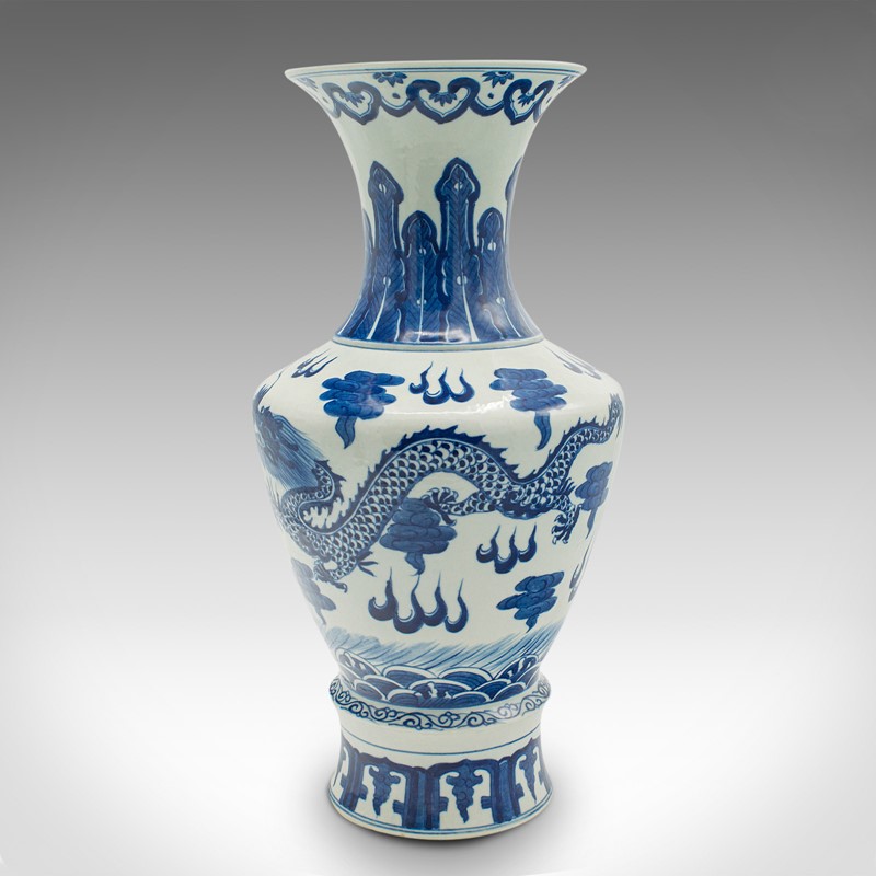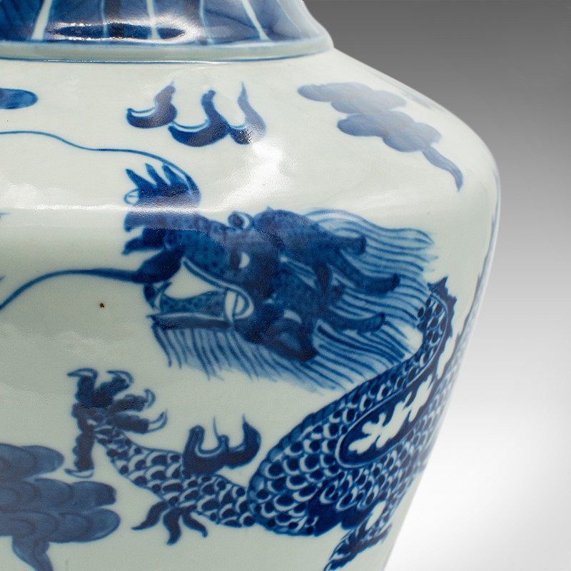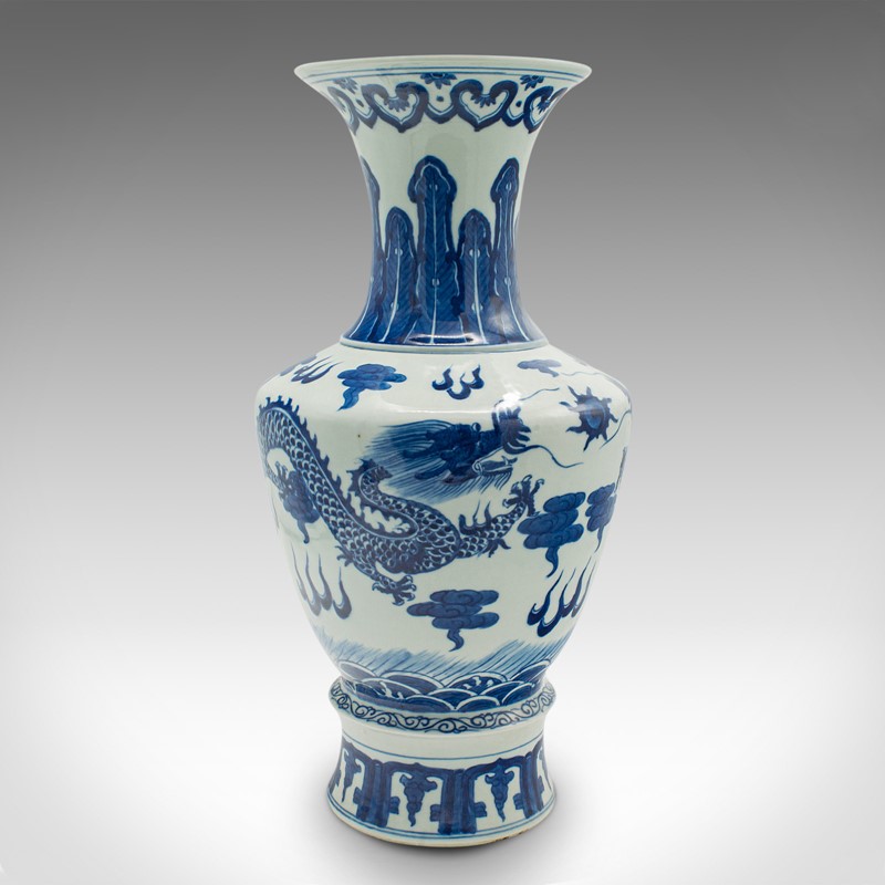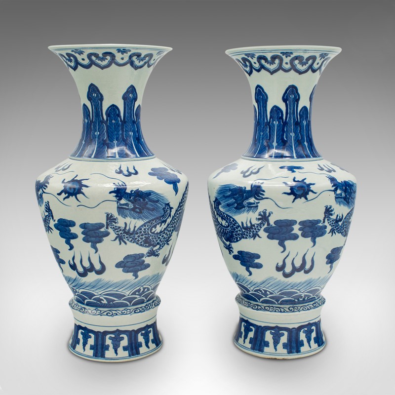 This is a striking pair of vintage baluster vases, with appealing Chinese dragon decor. Delivered polished and ready to display.