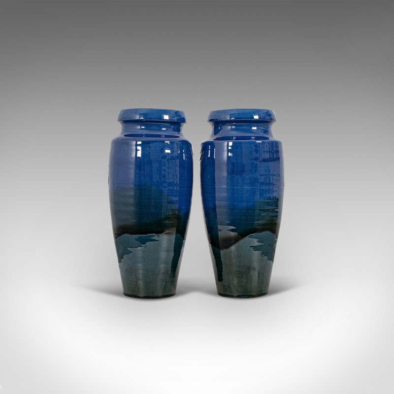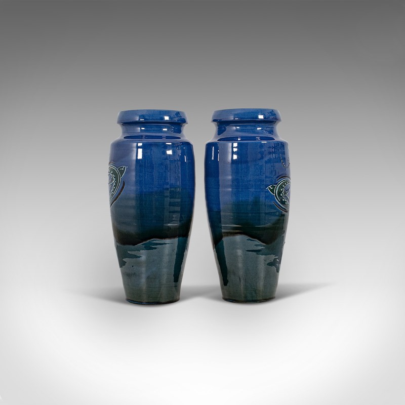 This is an attractive pair of vintage vases, with a fantastic graduated colour palette and eye-catching lustre. Delivered polished and ready to display.