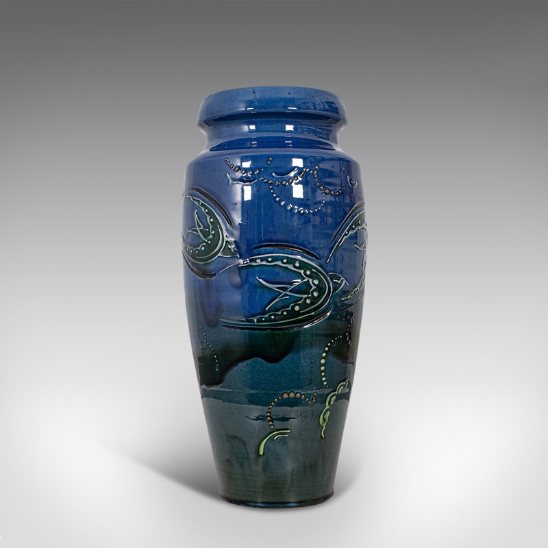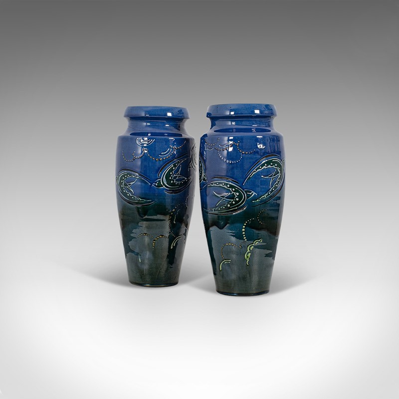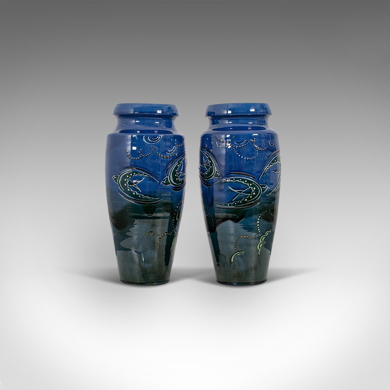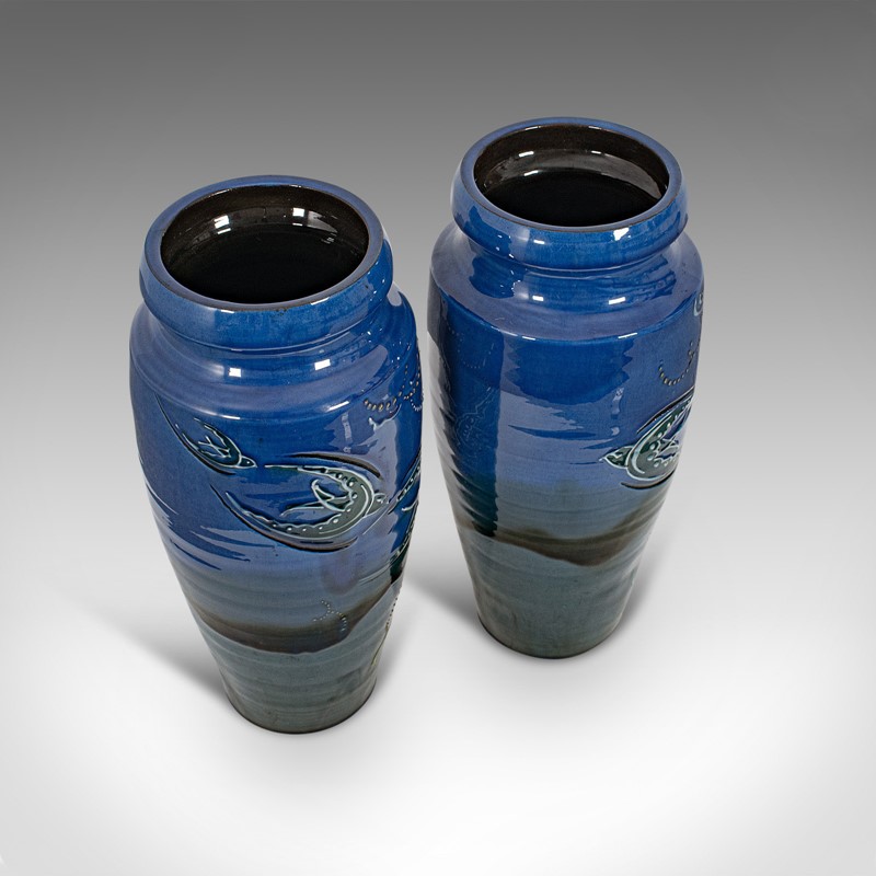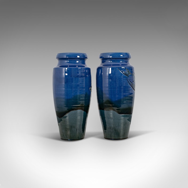Pair Of, Vintage Decorative Flower Vases, English, Ceramic, Hand Painted, C.1930
