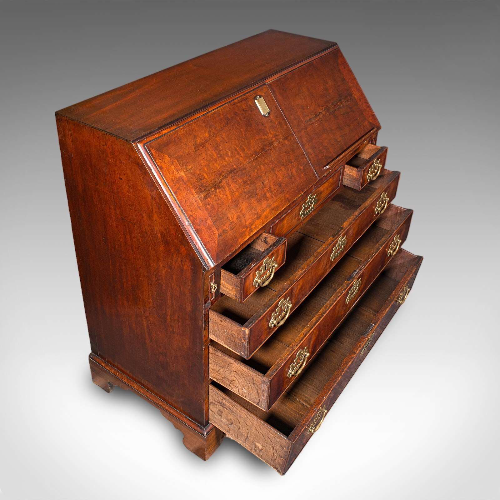 Beneath the bureau, a suite of five drawers arranged as the classic two over three
