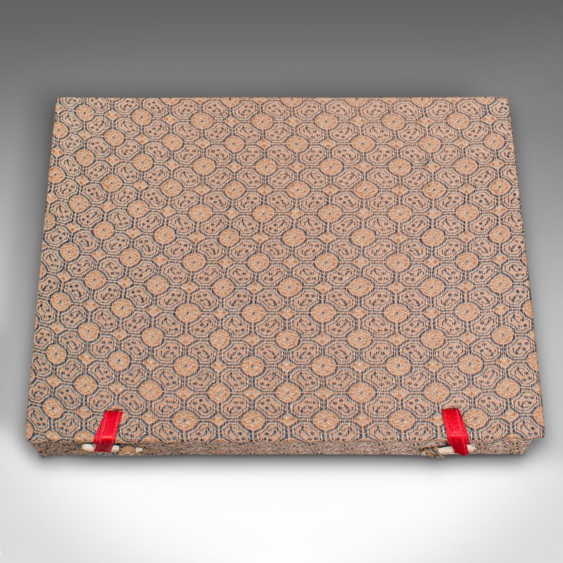 Fabric covered case dressed with a striking red lining in silk cotton