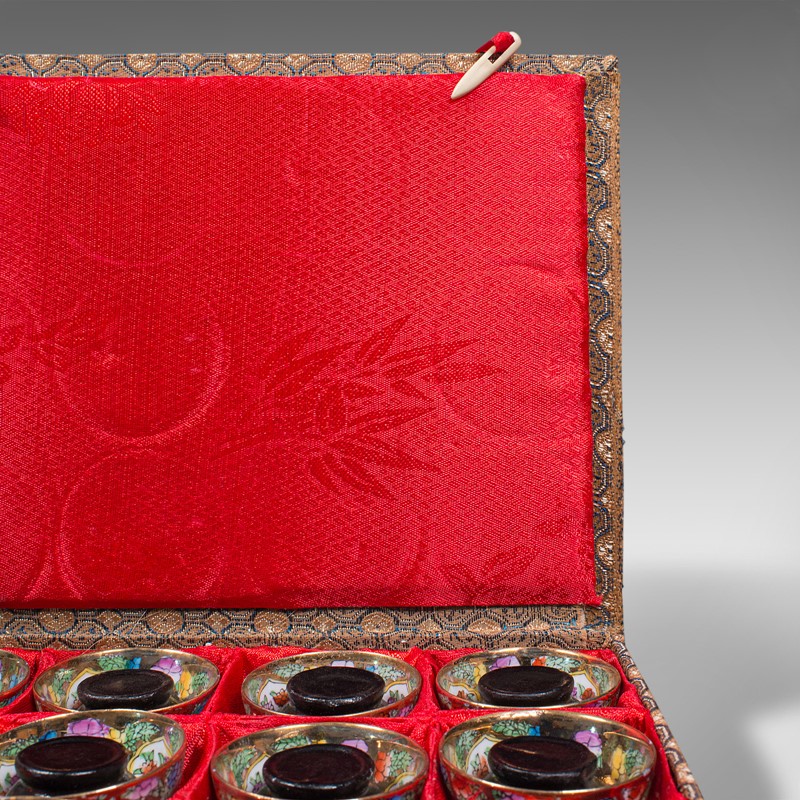 A charming kung fu or zisha tea cup set, presented in a distinctive case