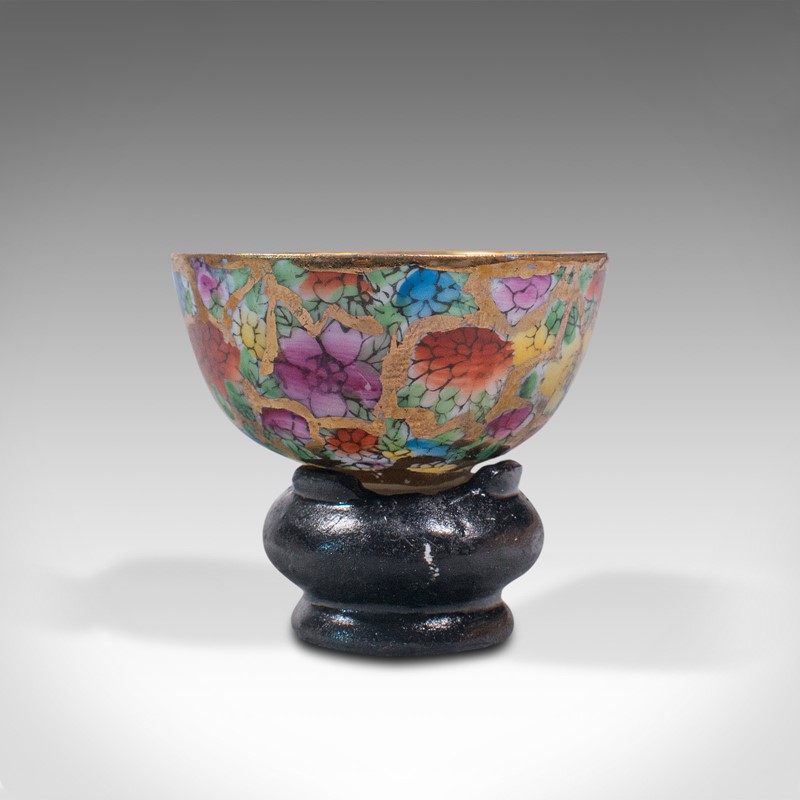 Ceramic bowls decorated with flowerhead pattern, and accentuated with beaming gilt paint