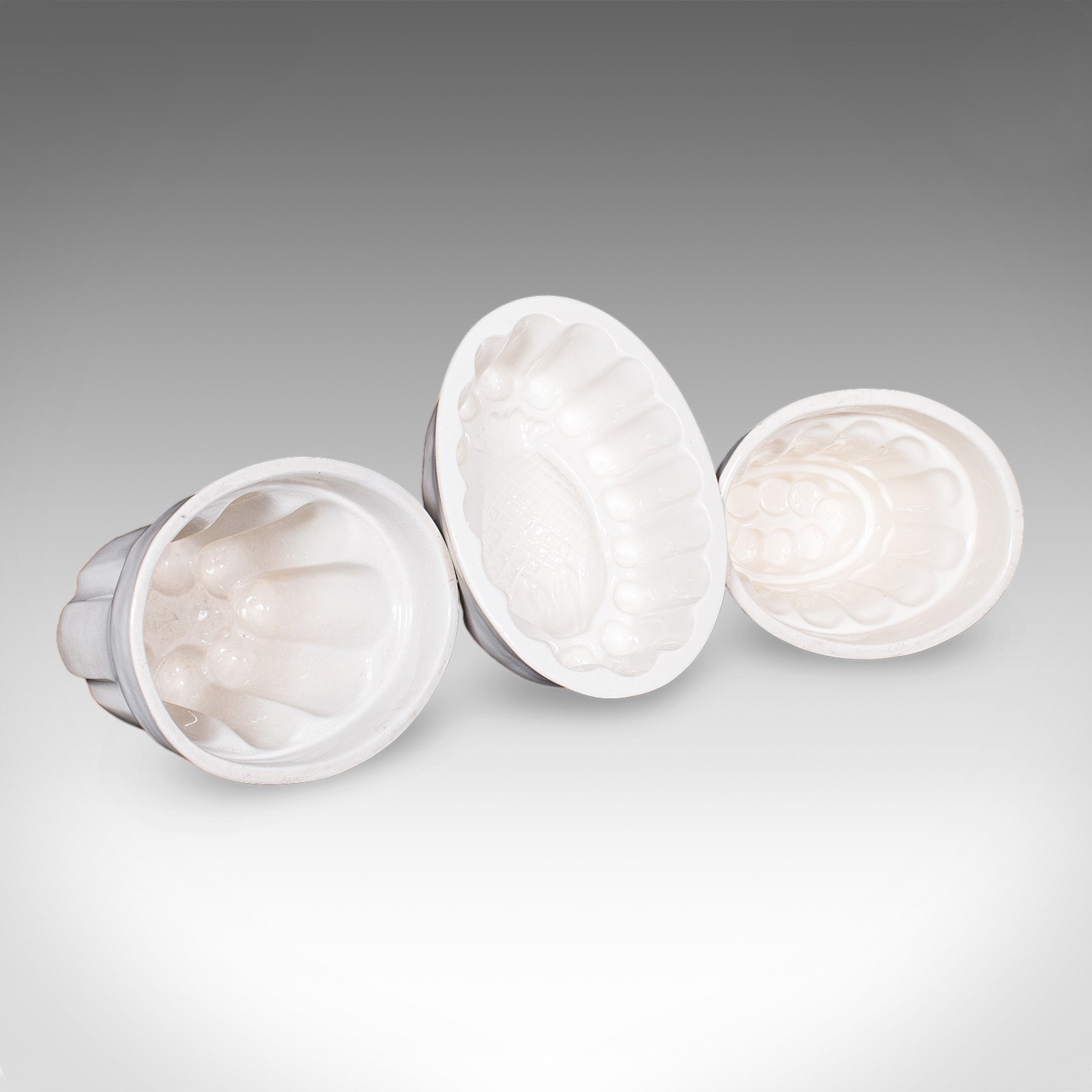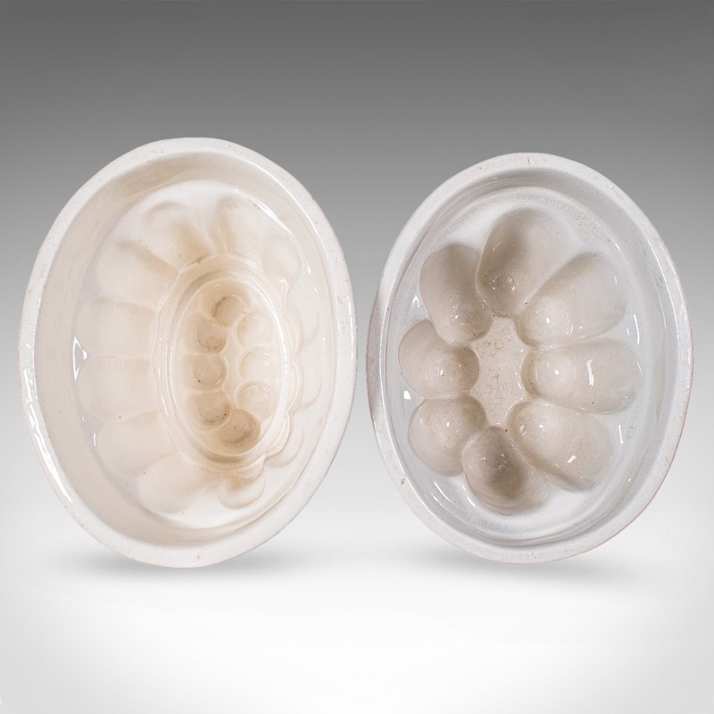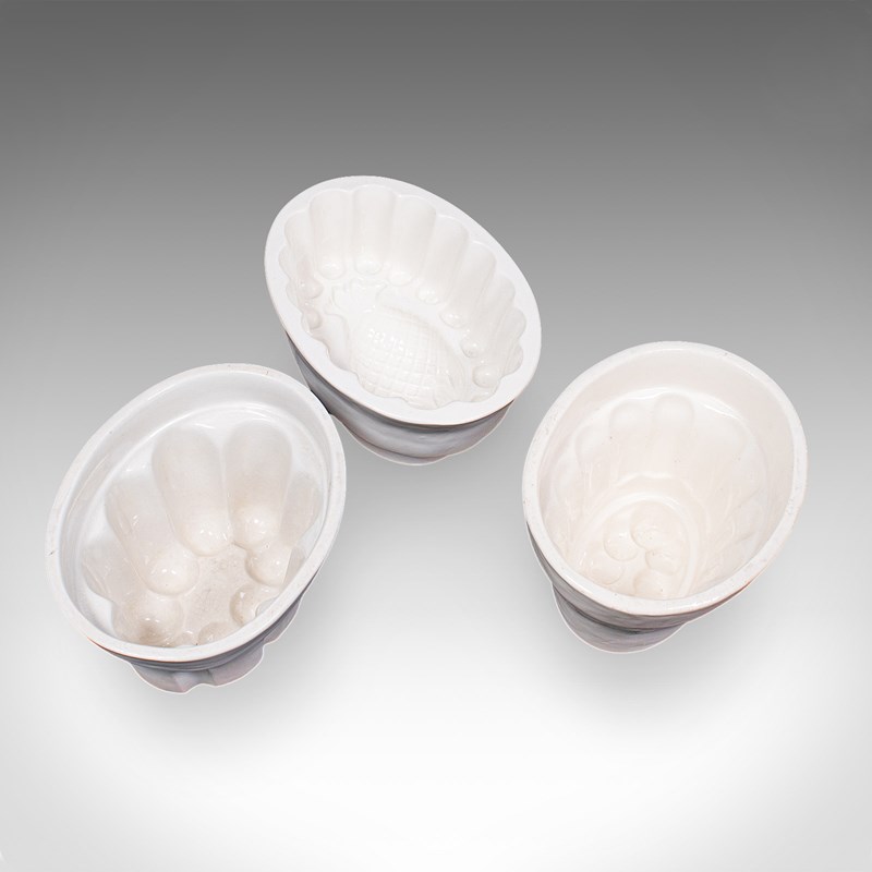 Set Of 3 Antique Jelly Moulds, English, Ceramic, Kitchen Accessory, Victorian
