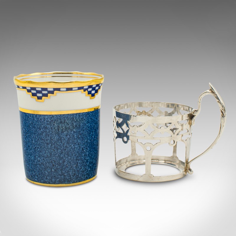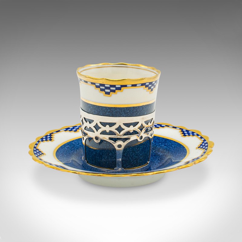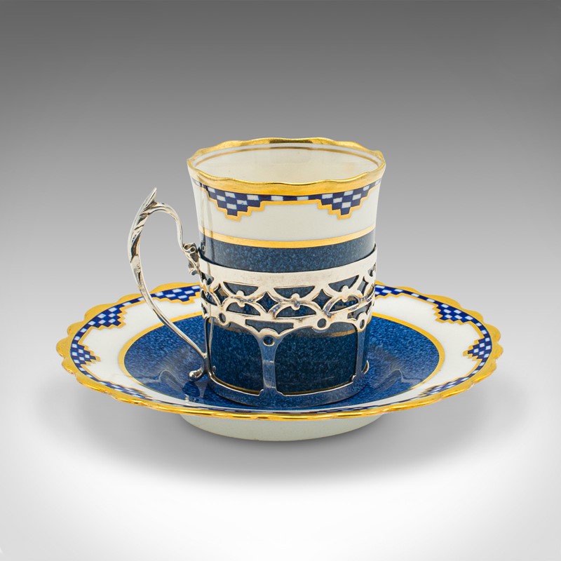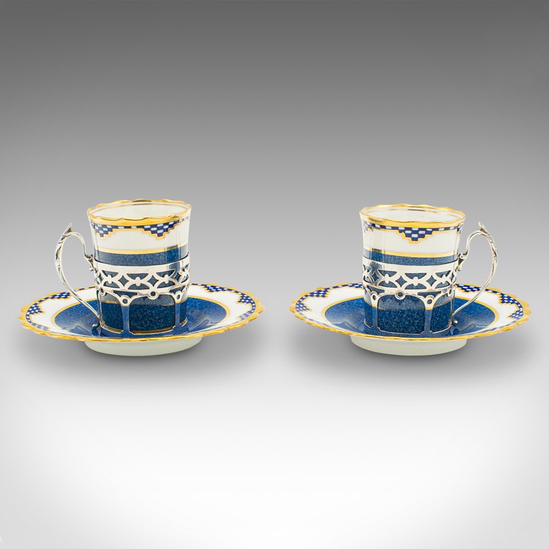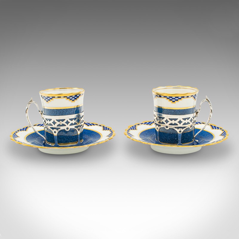 Set of 4 Vintage Cups & Saucers, English, Ceramic, Silver, Coffee Cans, Aynsley