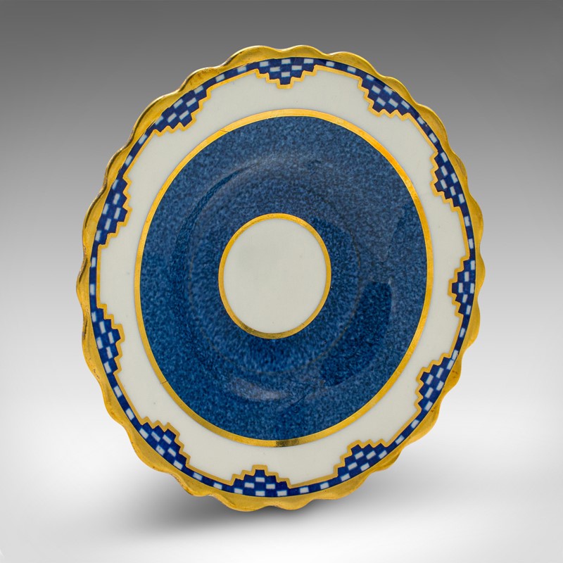 Quality ceramic decorated with cobalt blue and gilt highlights over a white ground