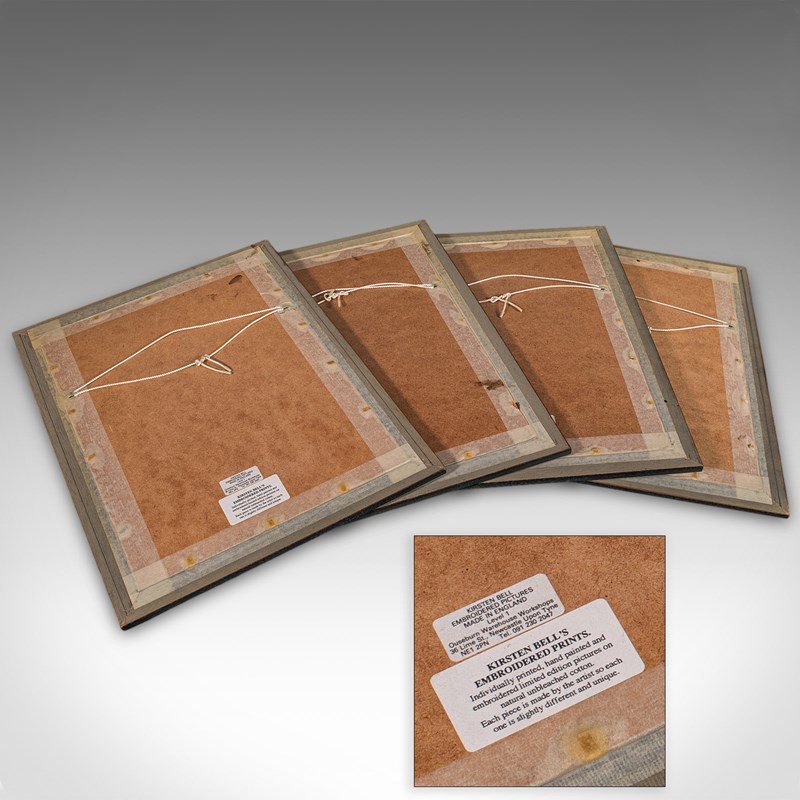 Set Of 4 Vintage Embroidery Panels, English, Hand Finished, Limited Edition, Art