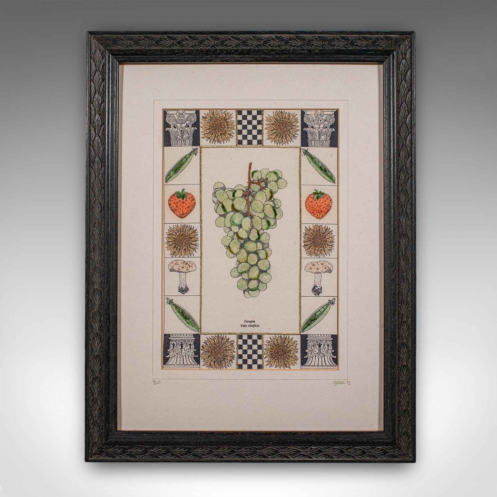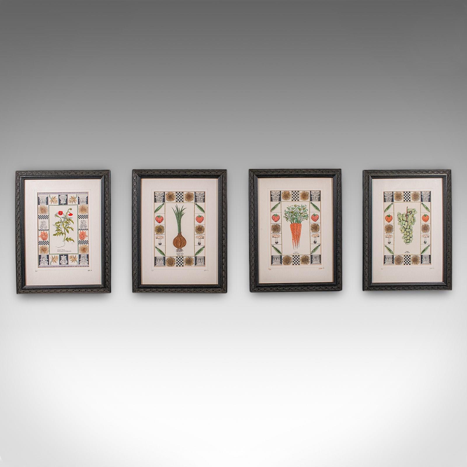 This is a set of four embroidery panels. An English, framed quartet of limited edition needlepoint cookery ingredient pictures, dating to the late 20th century, circa 1993.