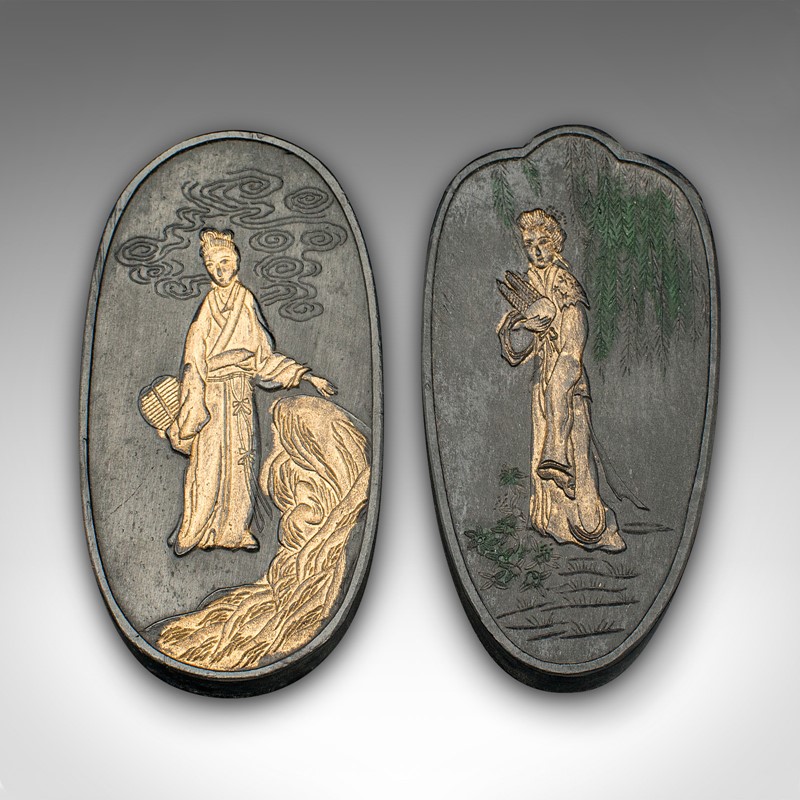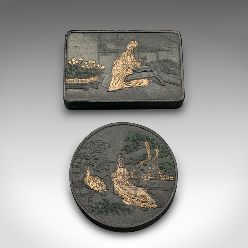 This is a delightful antique set of calligraphic ink blocks, presented in a wonderfully preserved order. A treat for the art appreciator or collector. Delivered ready to enjoy.