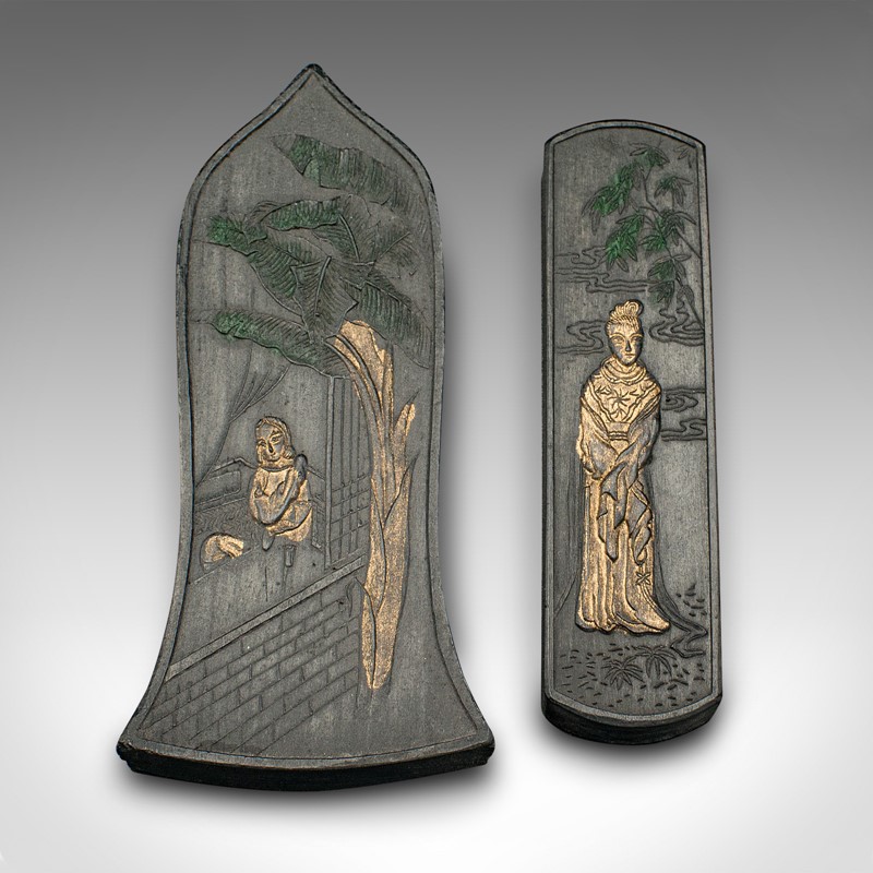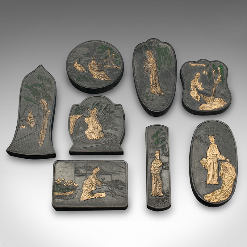 Set of 8 Antique Calligraphic Ink Blocks, Chinese, Cased, Printing, Victorian