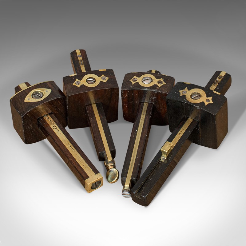 Set Of Vintage Mortise Gauges, Four, Rosewood, Brass, Carpenter's Tools, C.1950