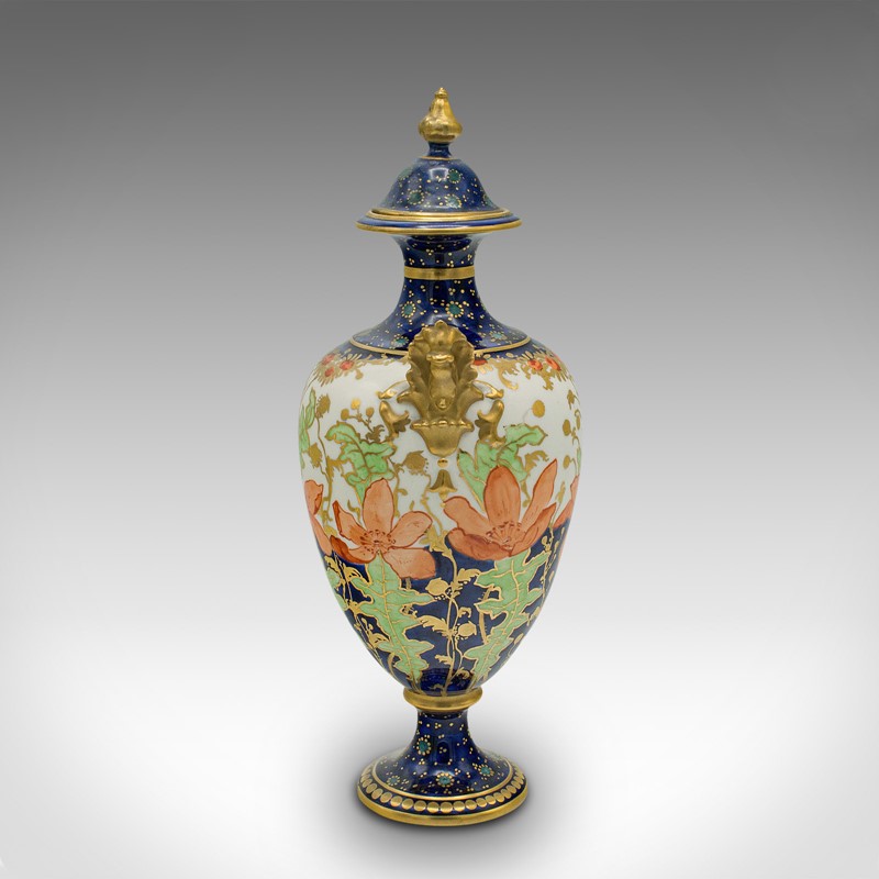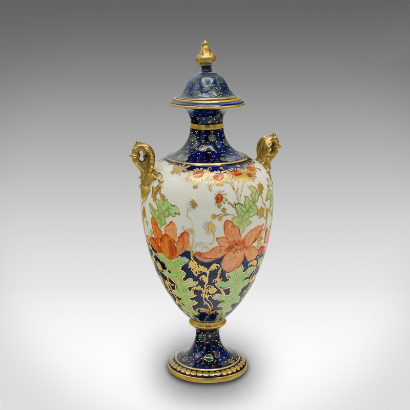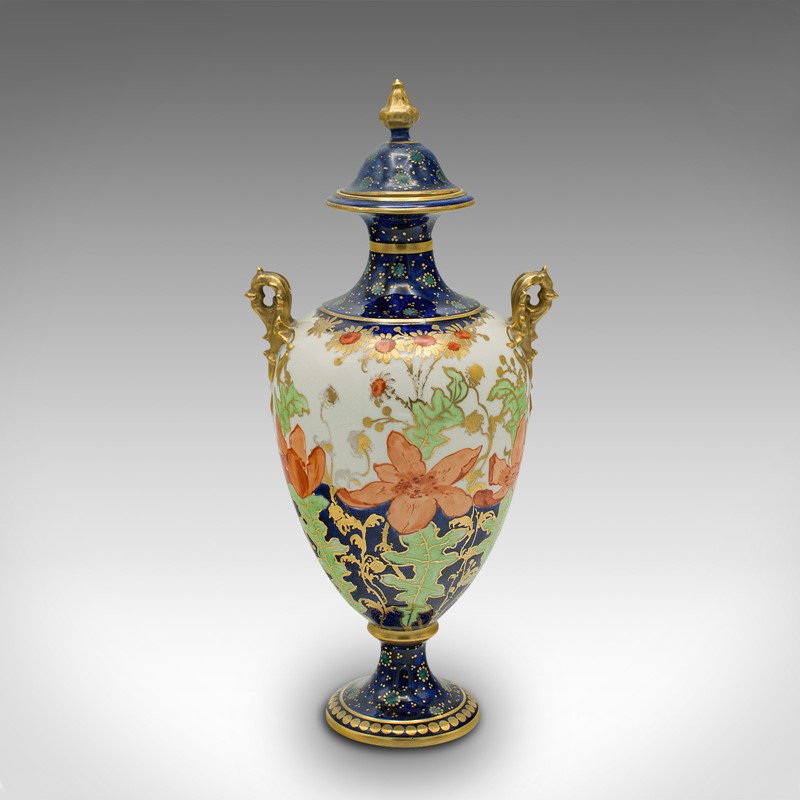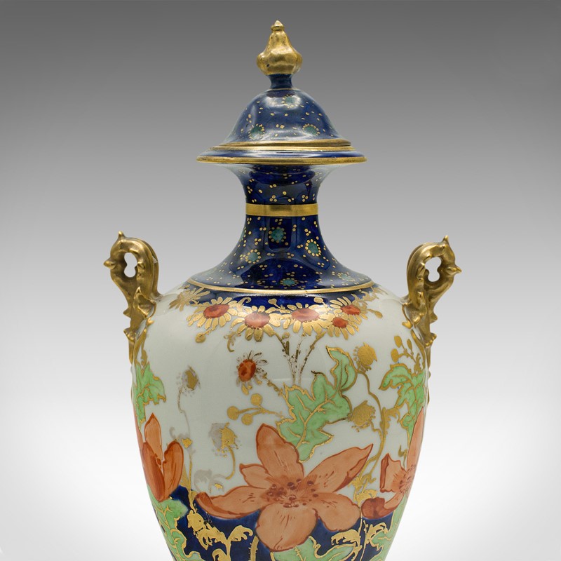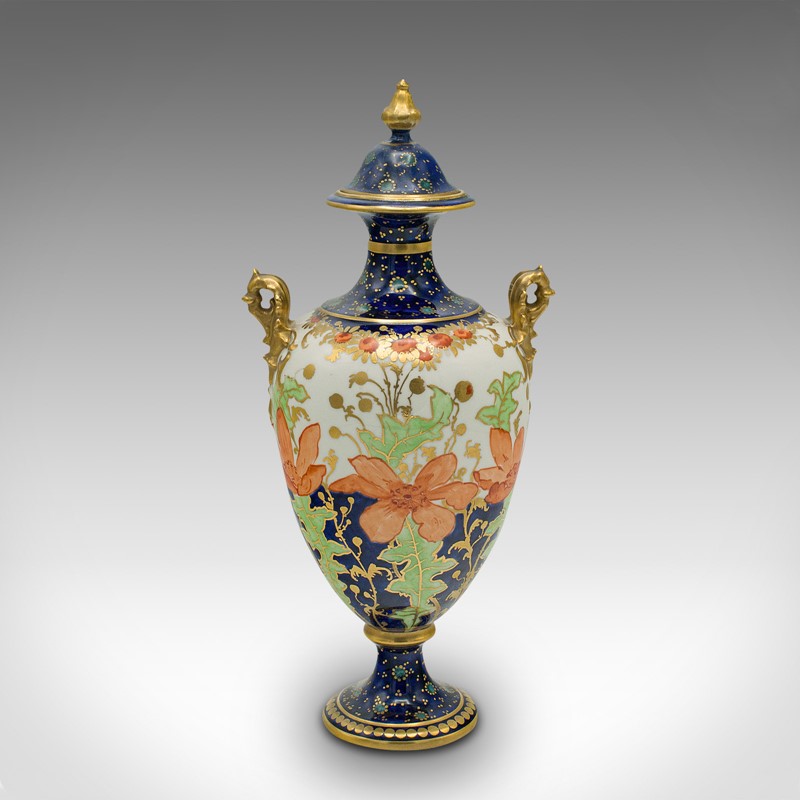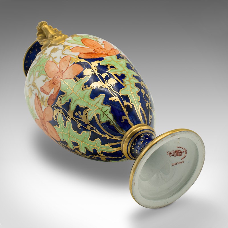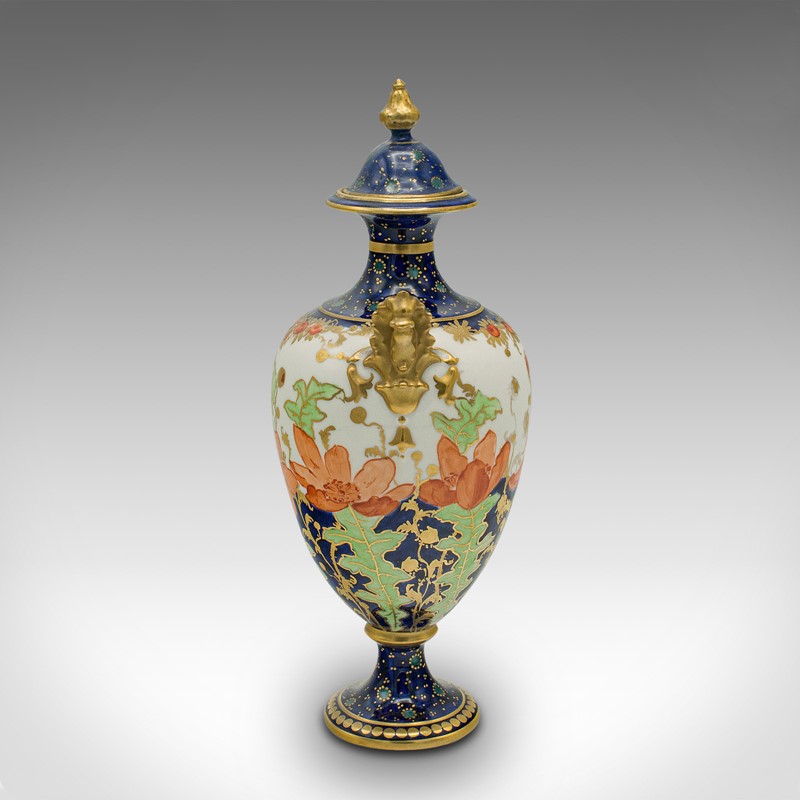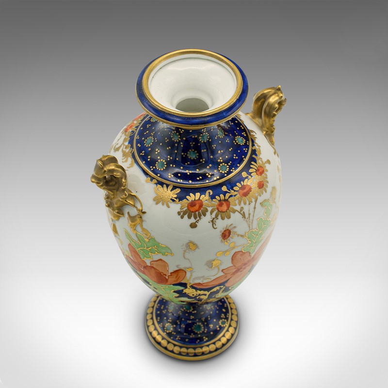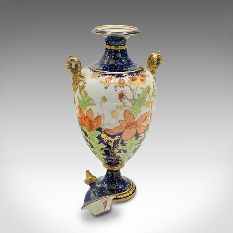 This is a small antique baluster urn. An English, ceramic decorative posy vase by Royal Crown Derby, dating to the late Victorian period, circa 1900.