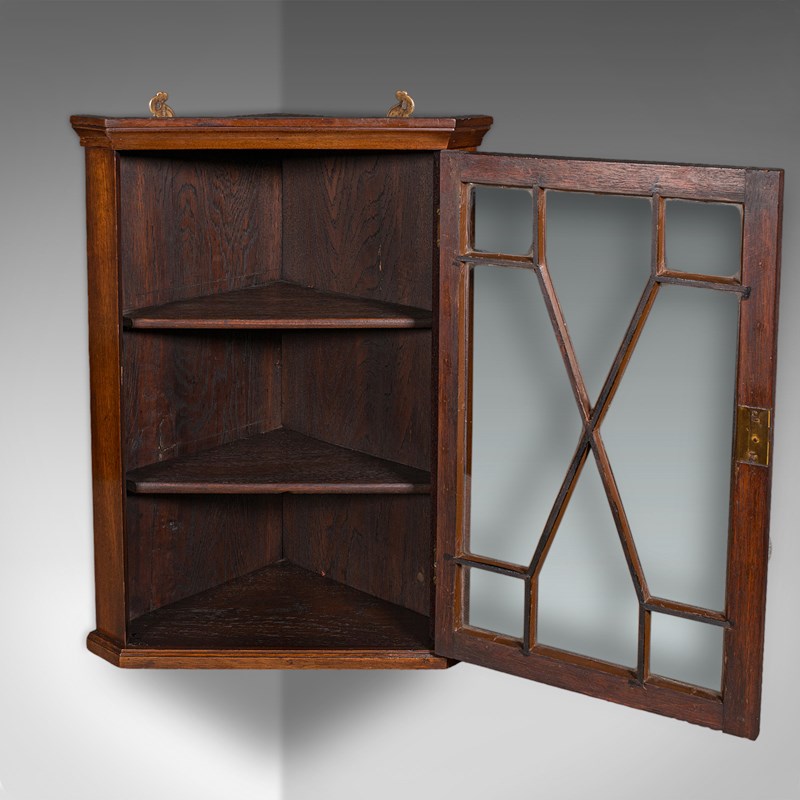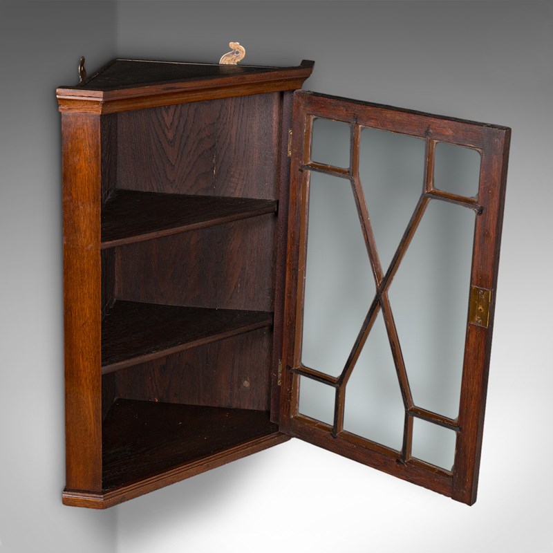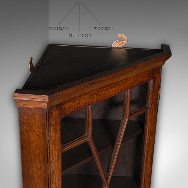 Small Antique Corner Cabinet, English, Glazed Display Cupboard, Edwardian, 1910