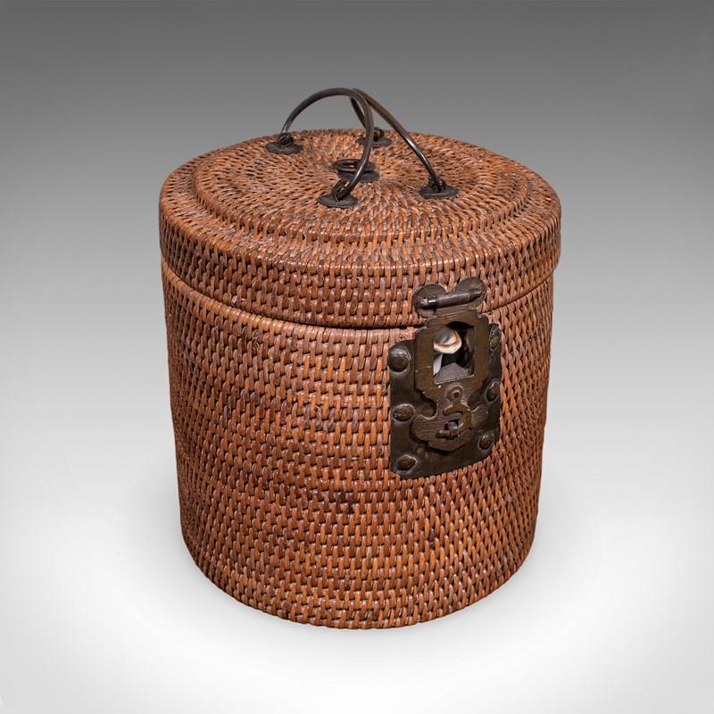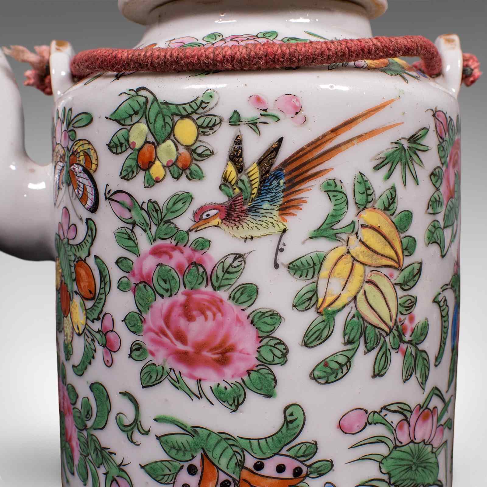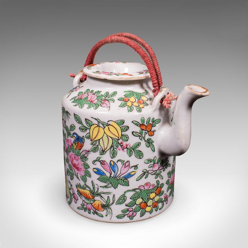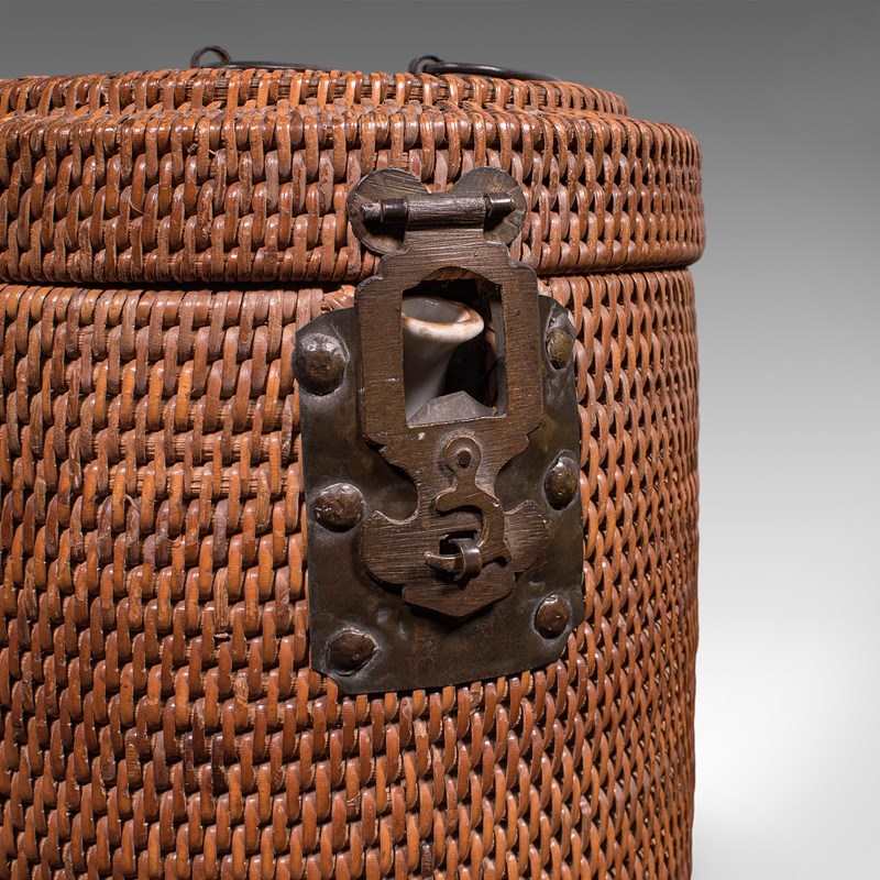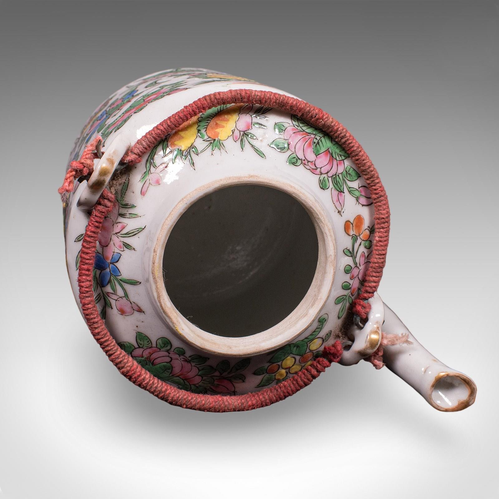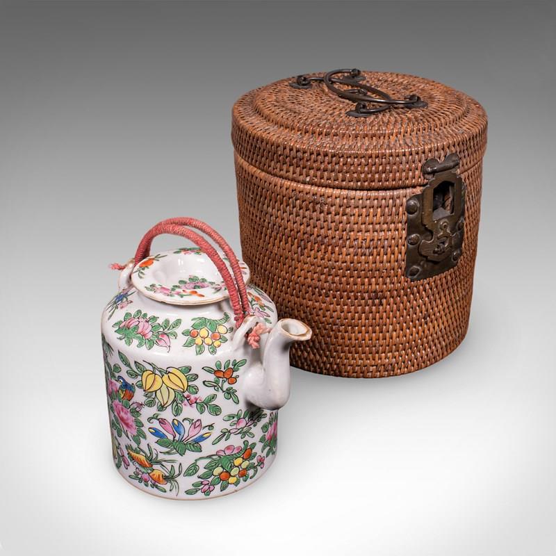 Small Antique Decorative Teapot, Oriental, Ceramic Chá Pot, Wicker Case, C.1920