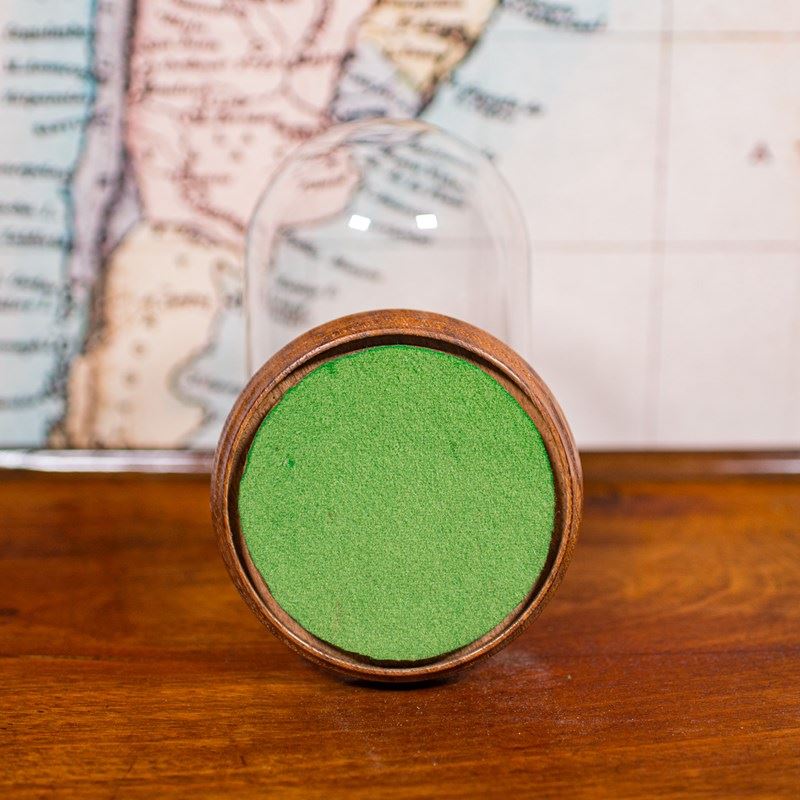 Emerald green baize cushion interior, adding contrast and enhancing displayed items