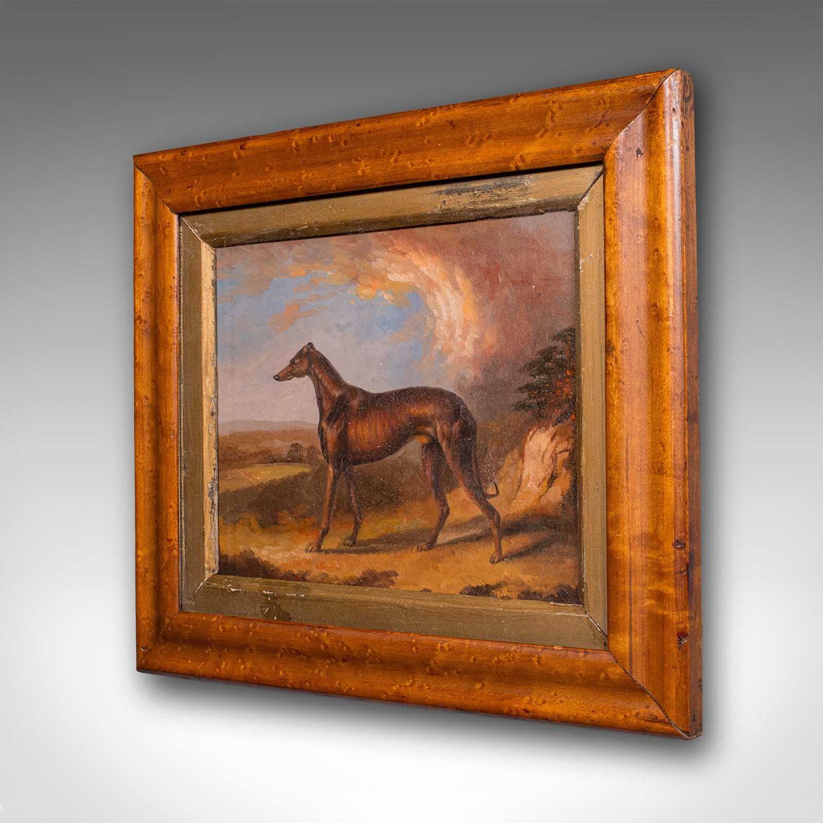 Small Antique Greyhound Painting, Oil On Board, Maple Frame, Dog Art, Victorian