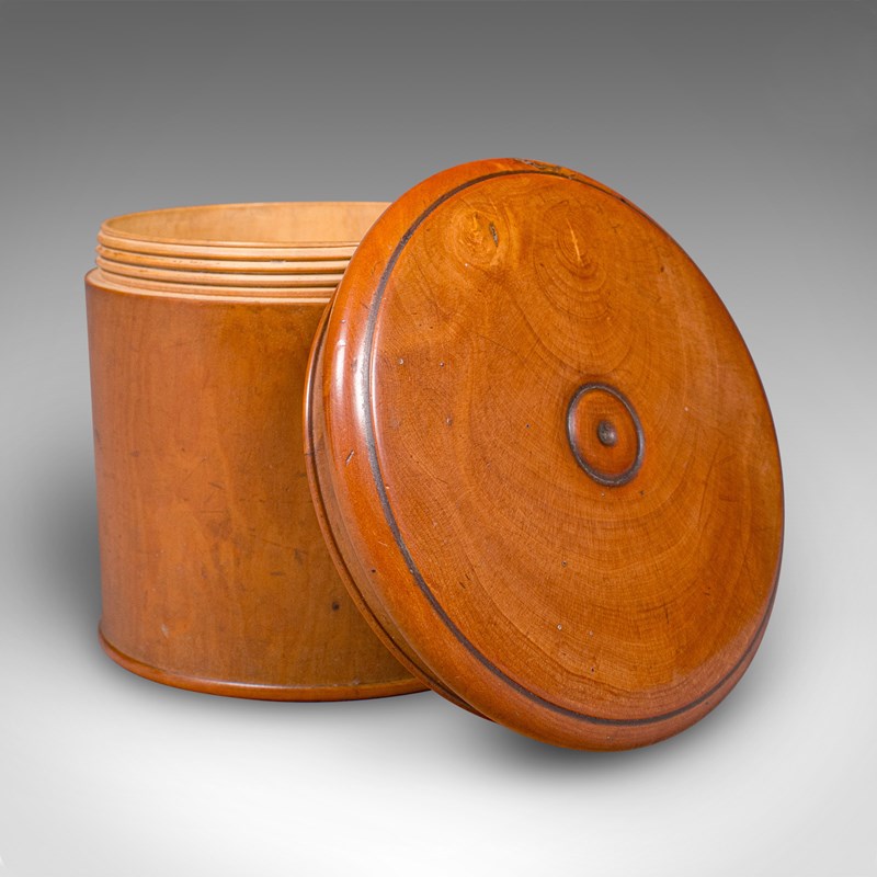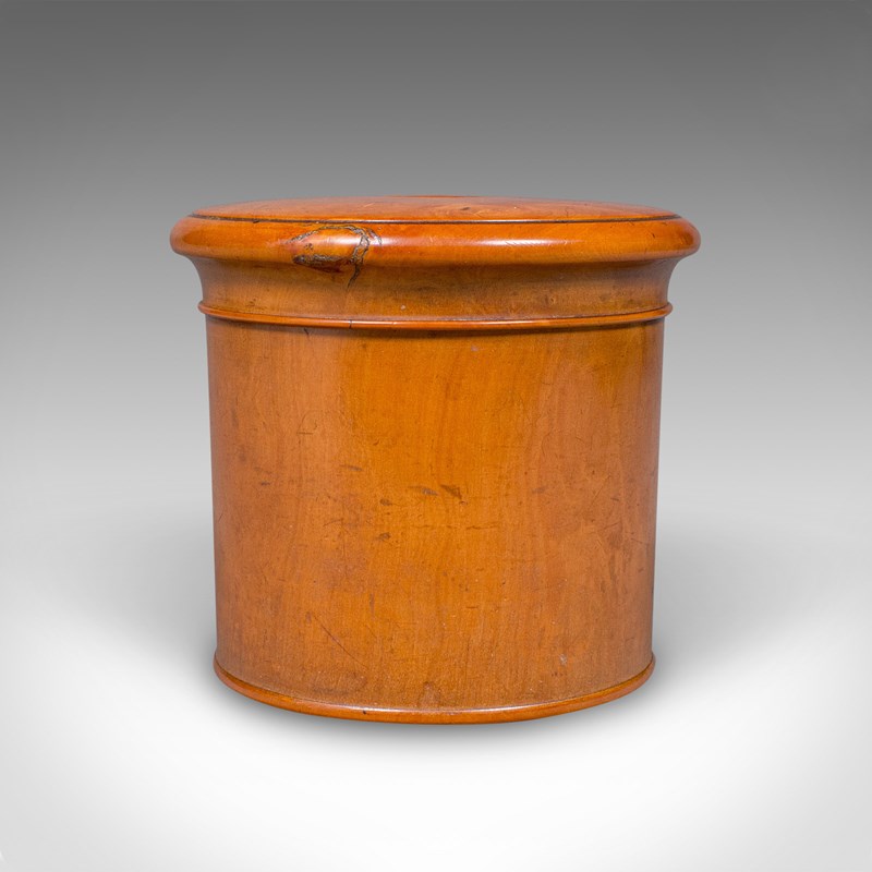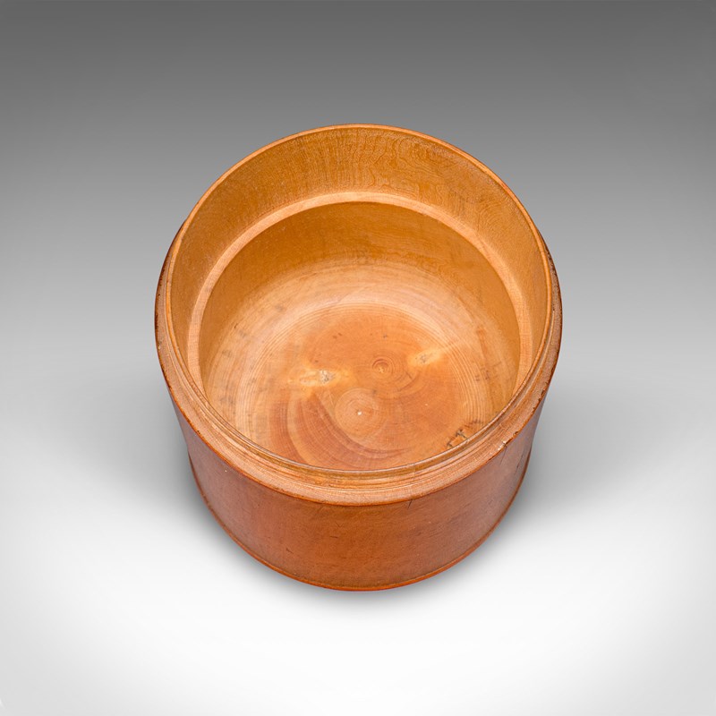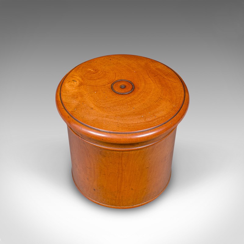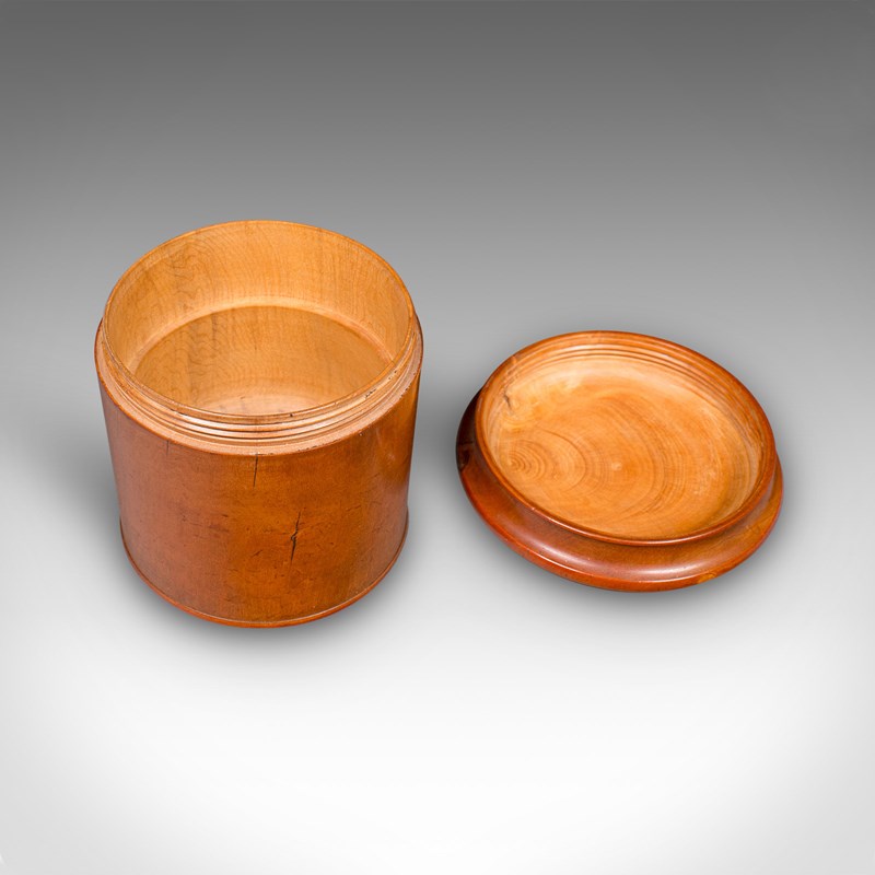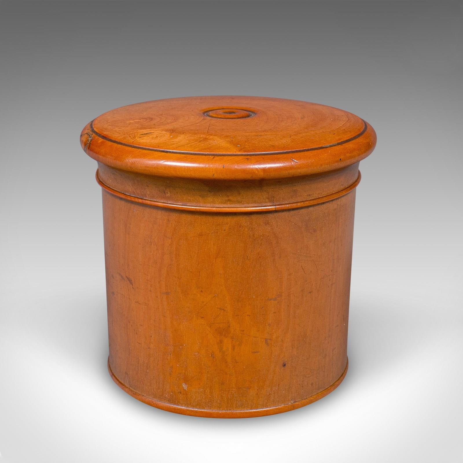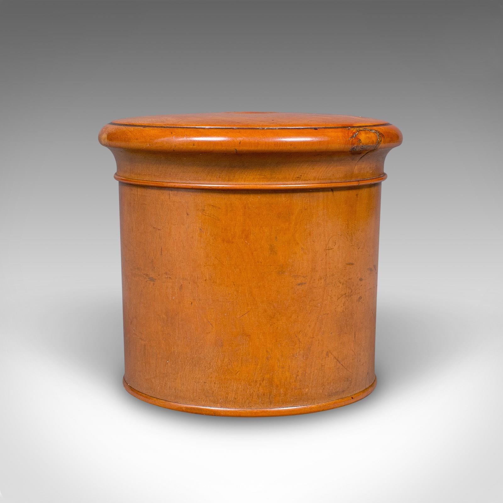 This is a small vintage dice pot. An English, turned cedar gaming or lidded keepsake box, dating to the early 20th century, circa 1930. A delightful piece of treenware with fine grain interest and warm tones.