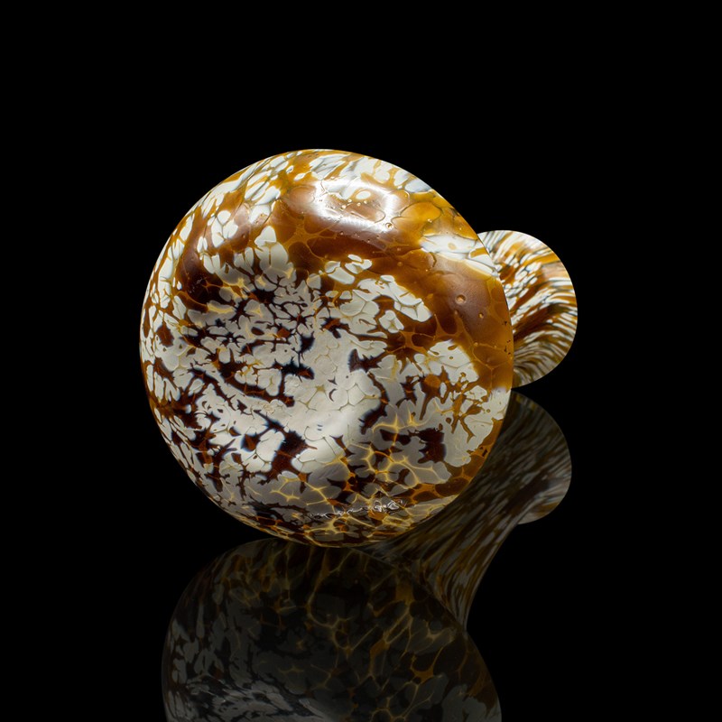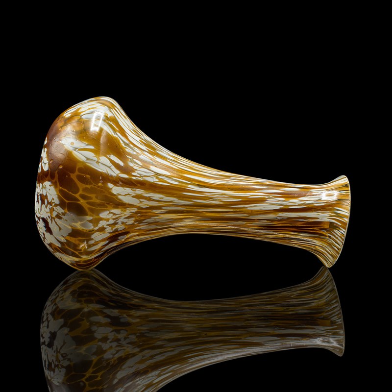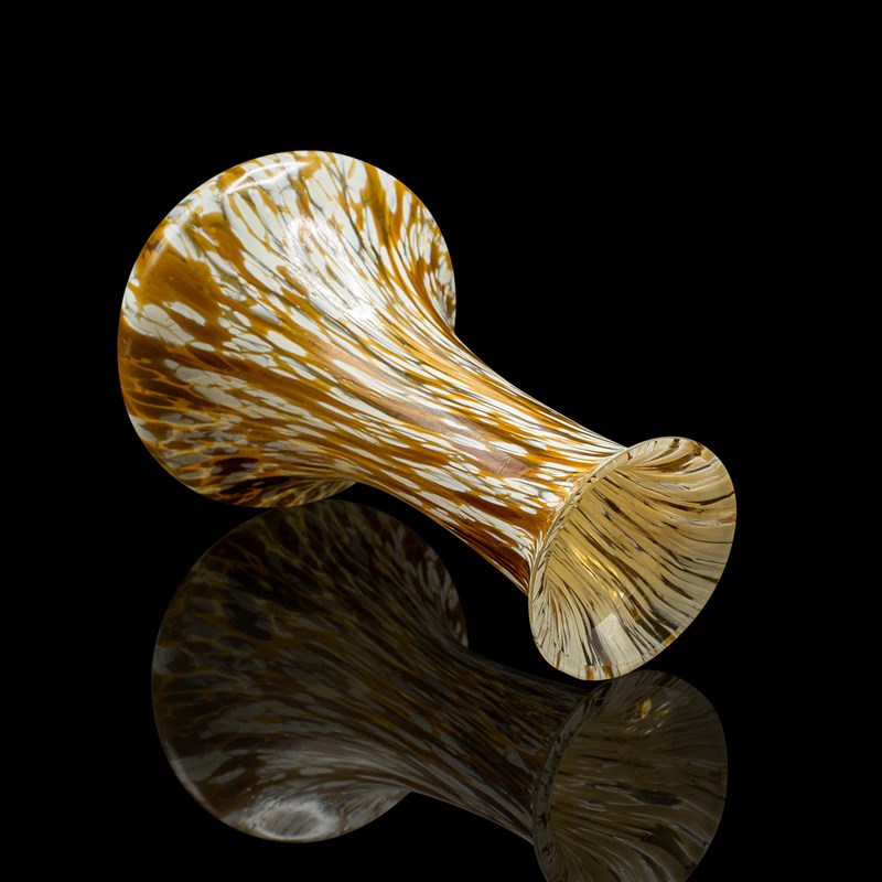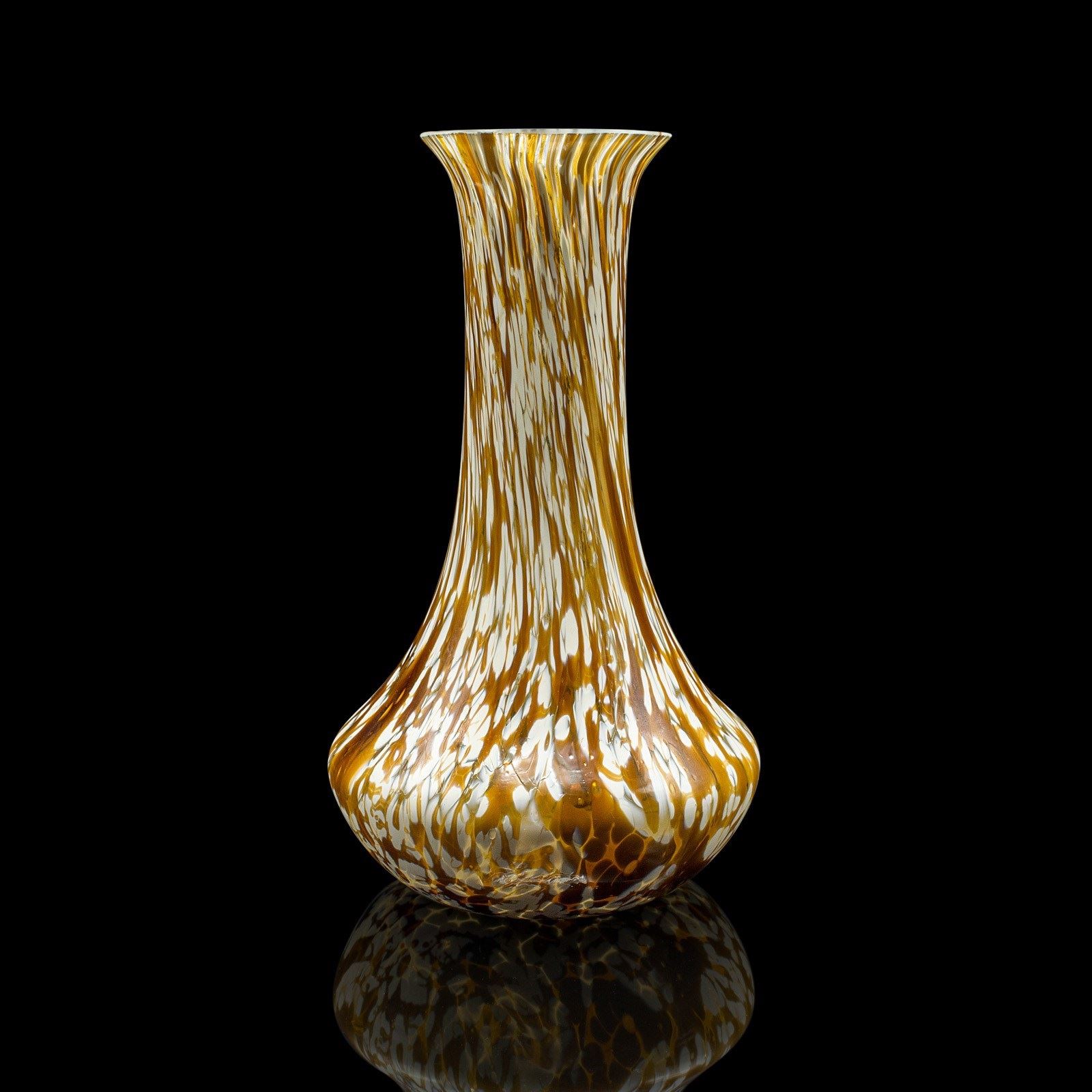 This is a small vintage display vase of Italian Murano art glass, dating to the late 20th century, circa 1980. This charming posy sleeve showcases Murano’s renowned craftsmanship with a white and caramel colour palette and a distinctive drip effect finish, making it an elegant decorative accent.
