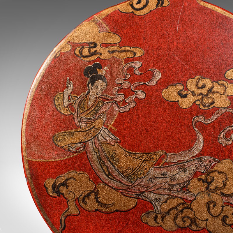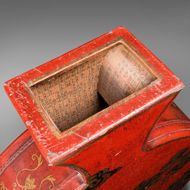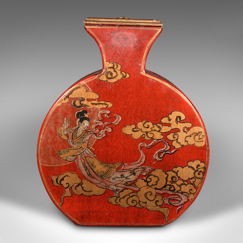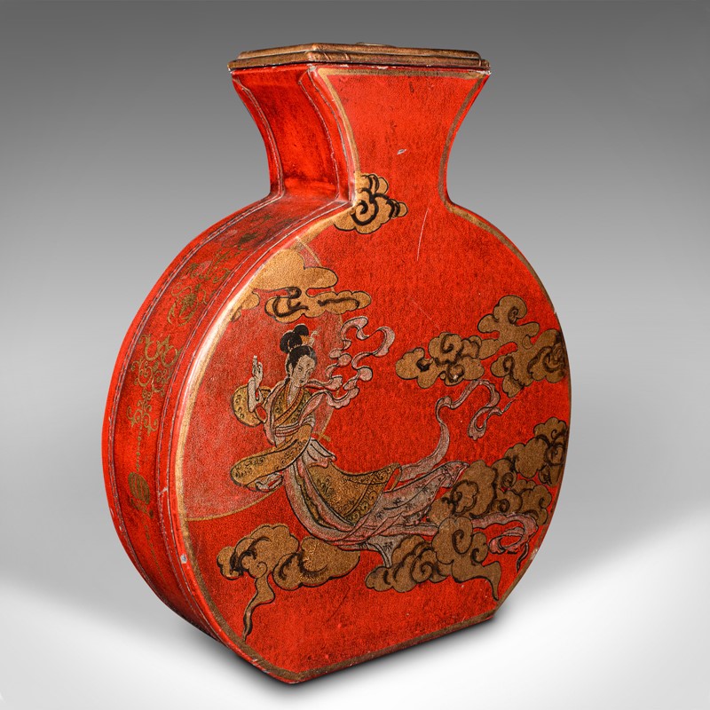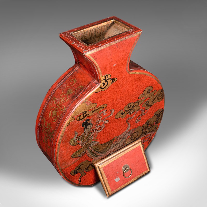 Small Vintage Dried Flower Vase, Chinese, Waxed Paper, Decorative Drum Urn, 1970