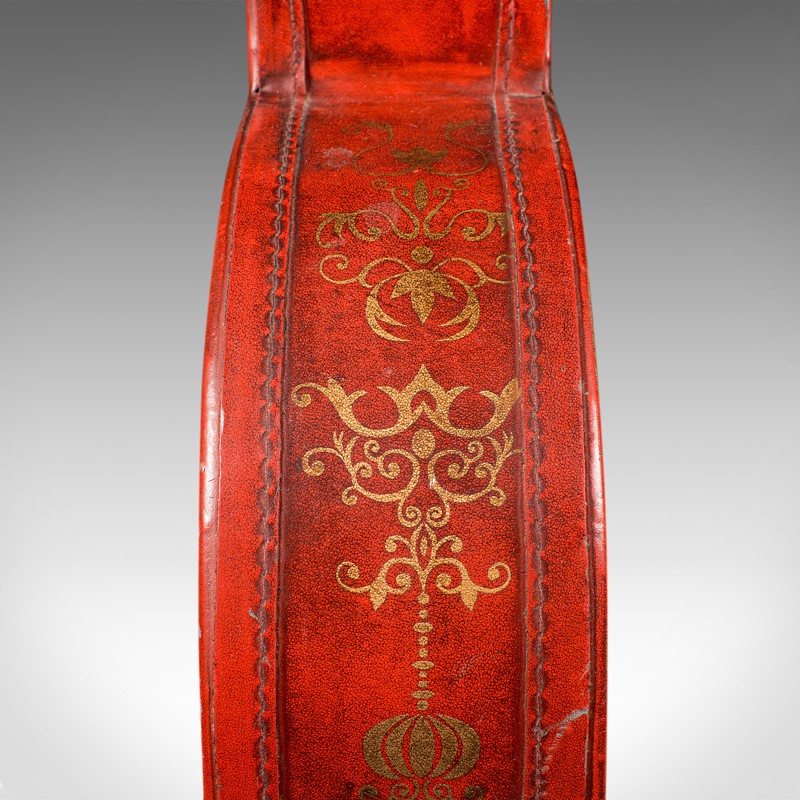Striking crimson red waxed paper over a drum vase form draws the eye
