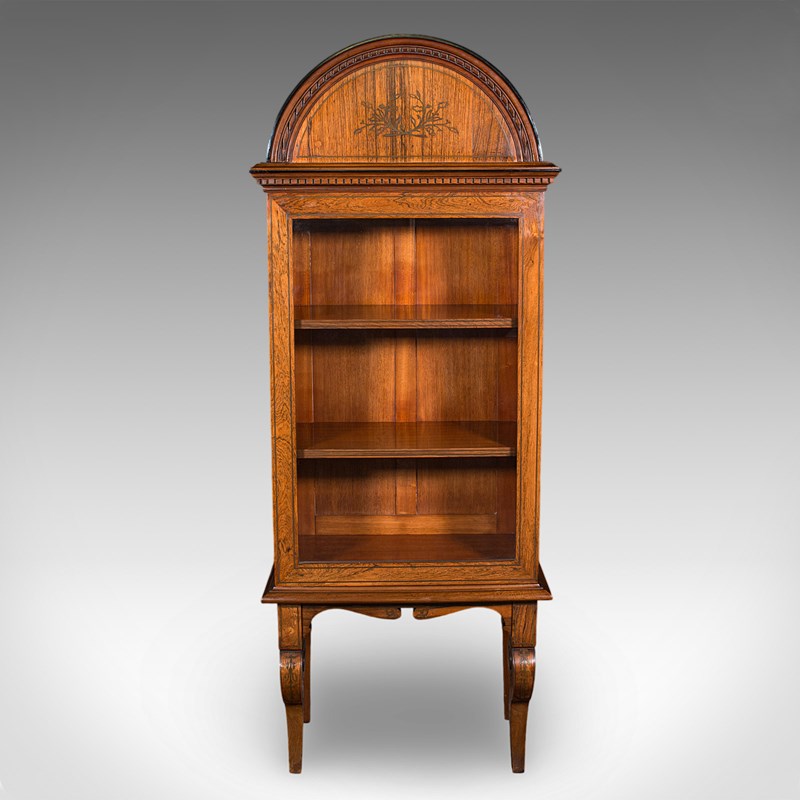This is a delightful antique display cabinet, offering a tall profile and a beautiful presentation space , with excellent material use and fine craftsmanship. A treat for the lounge or study. Solid joints and construction, delivered ready for the home.