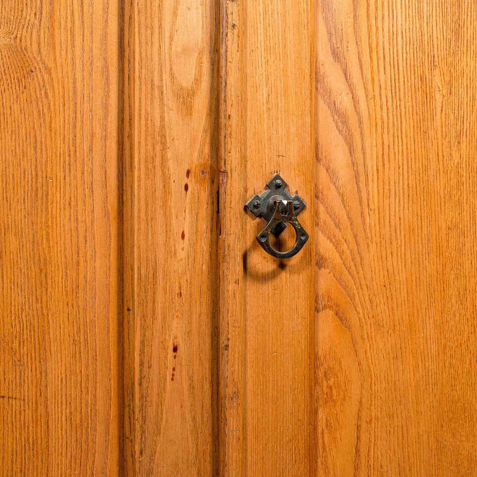 Pair of field panel doors, the right-hand door hosting a brass drop pull