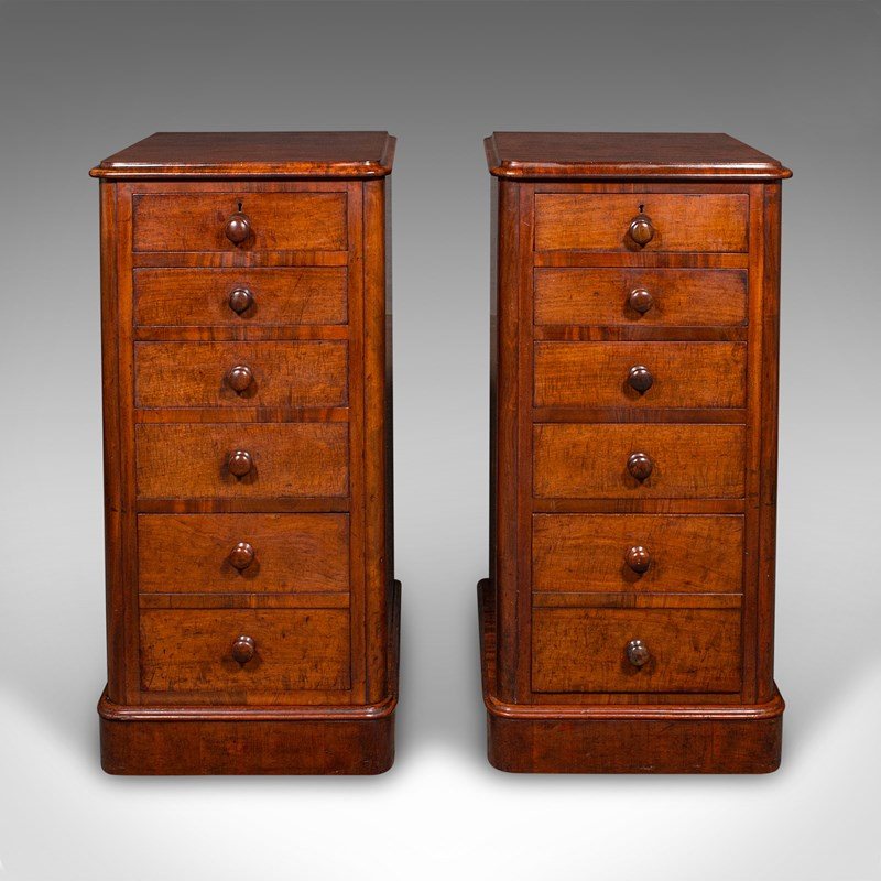 Tall Pair Of Antique Nightstands, English, Chest Of Drawers, Bedside, Victorian