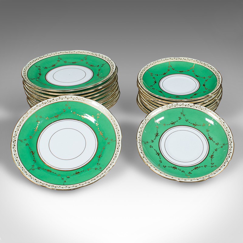 Set upon a broad band, the green border hosts gilt finished foliate garlands