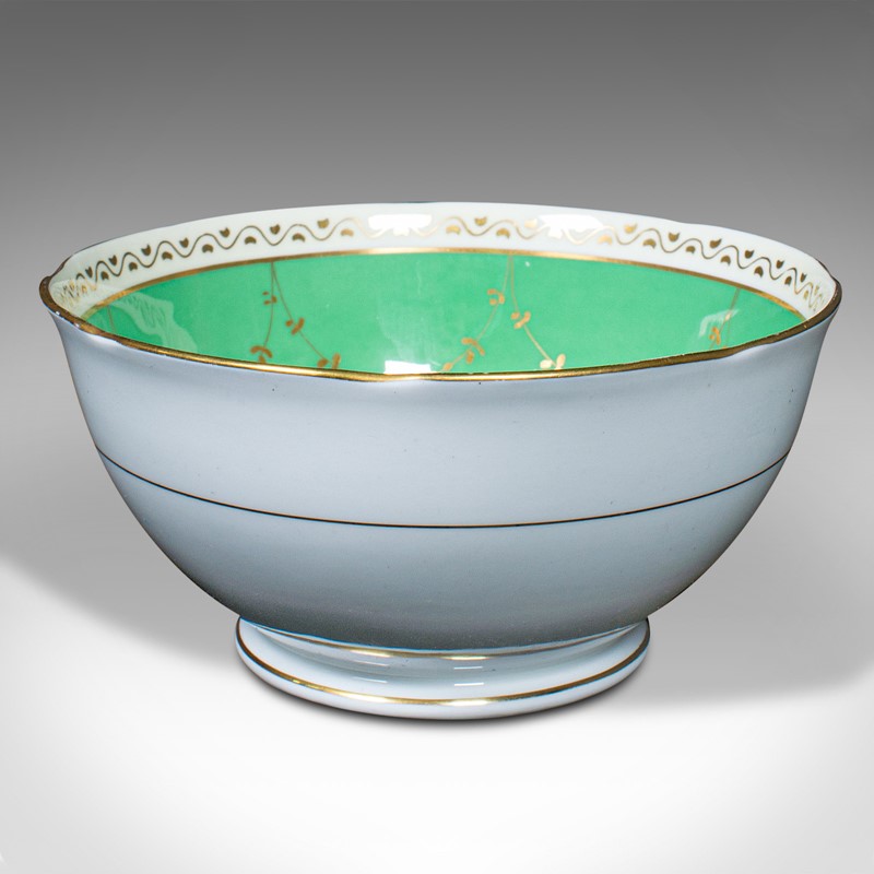 White ceramic accentuated with gilt decor and vibrant green pattern