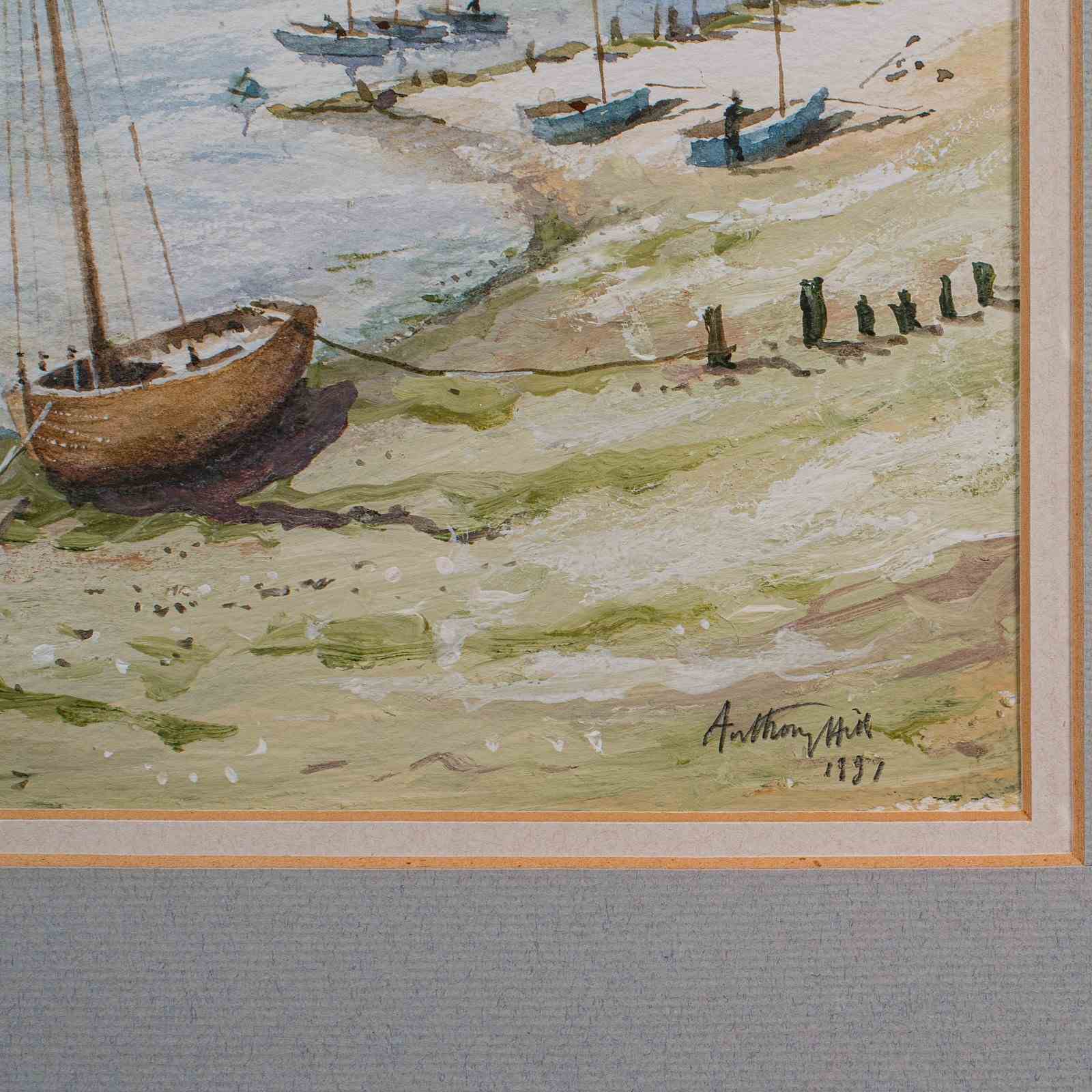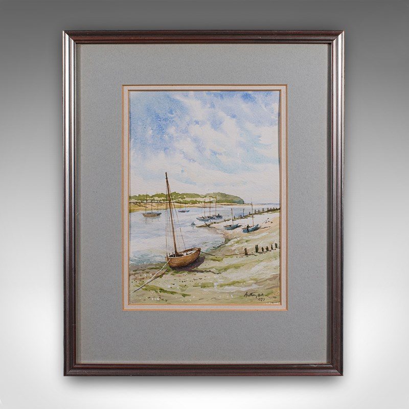Vintage Beach Landscape Painting, English School Watercolour, Nautical Art, 1991