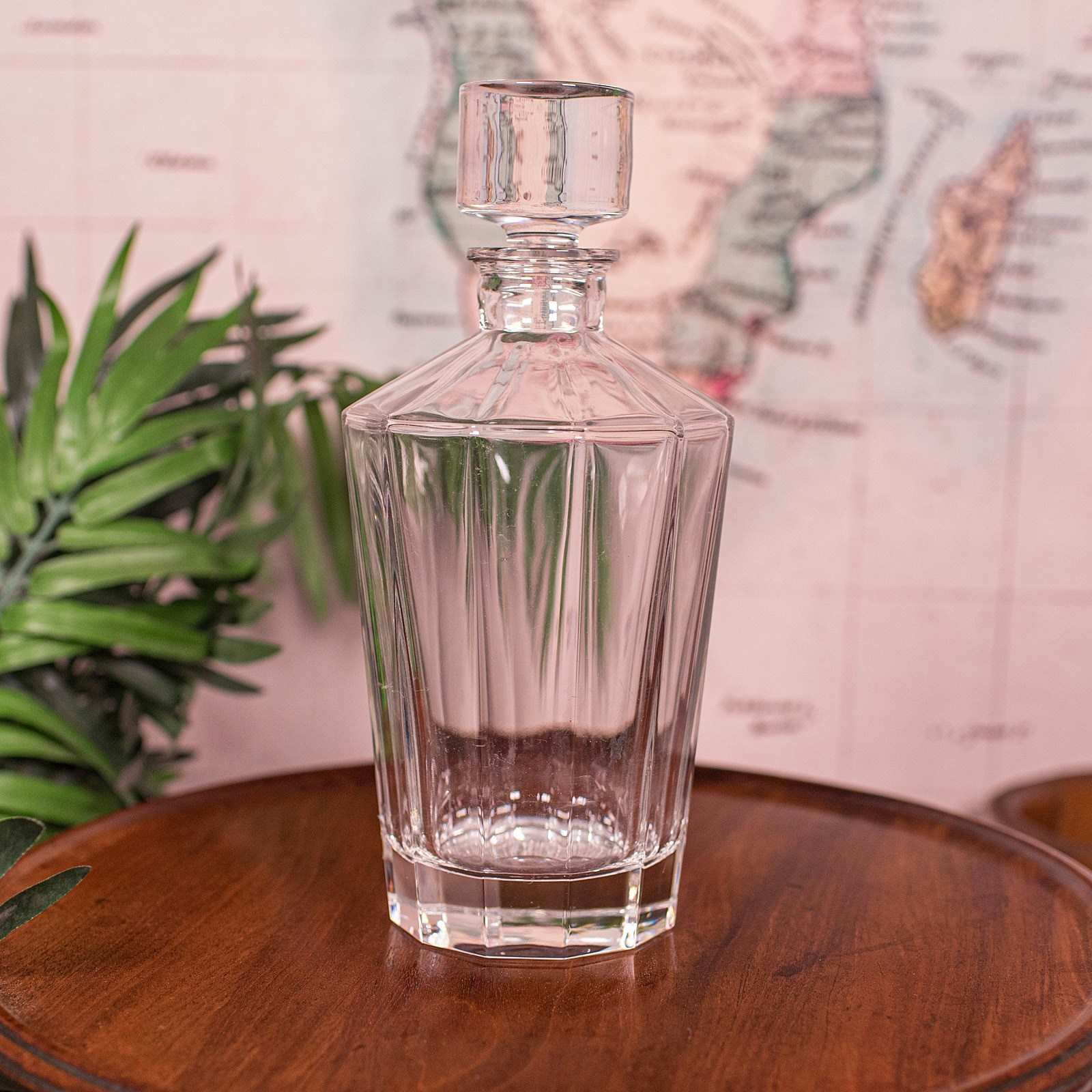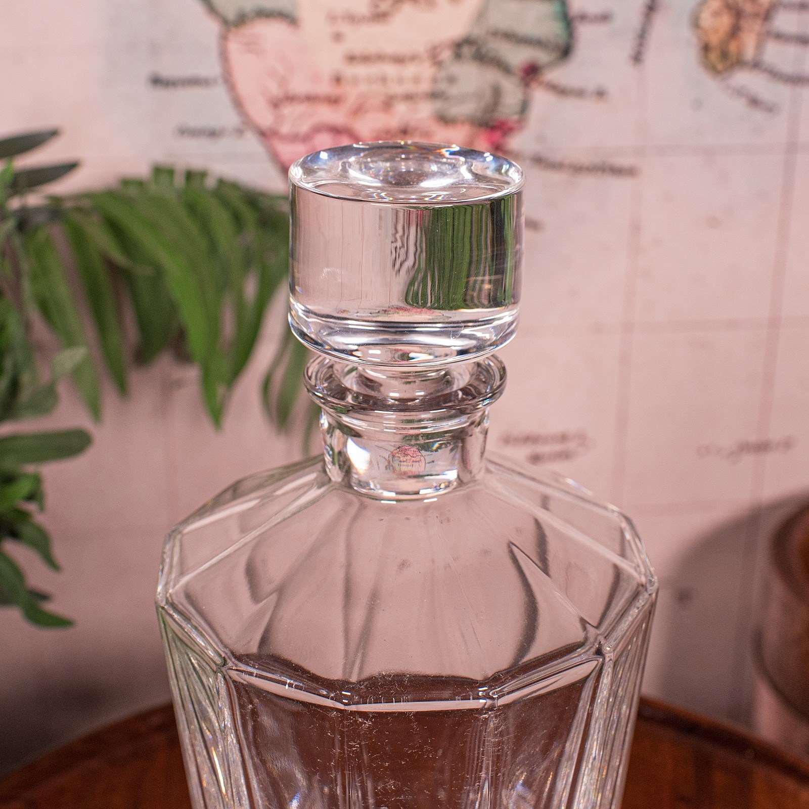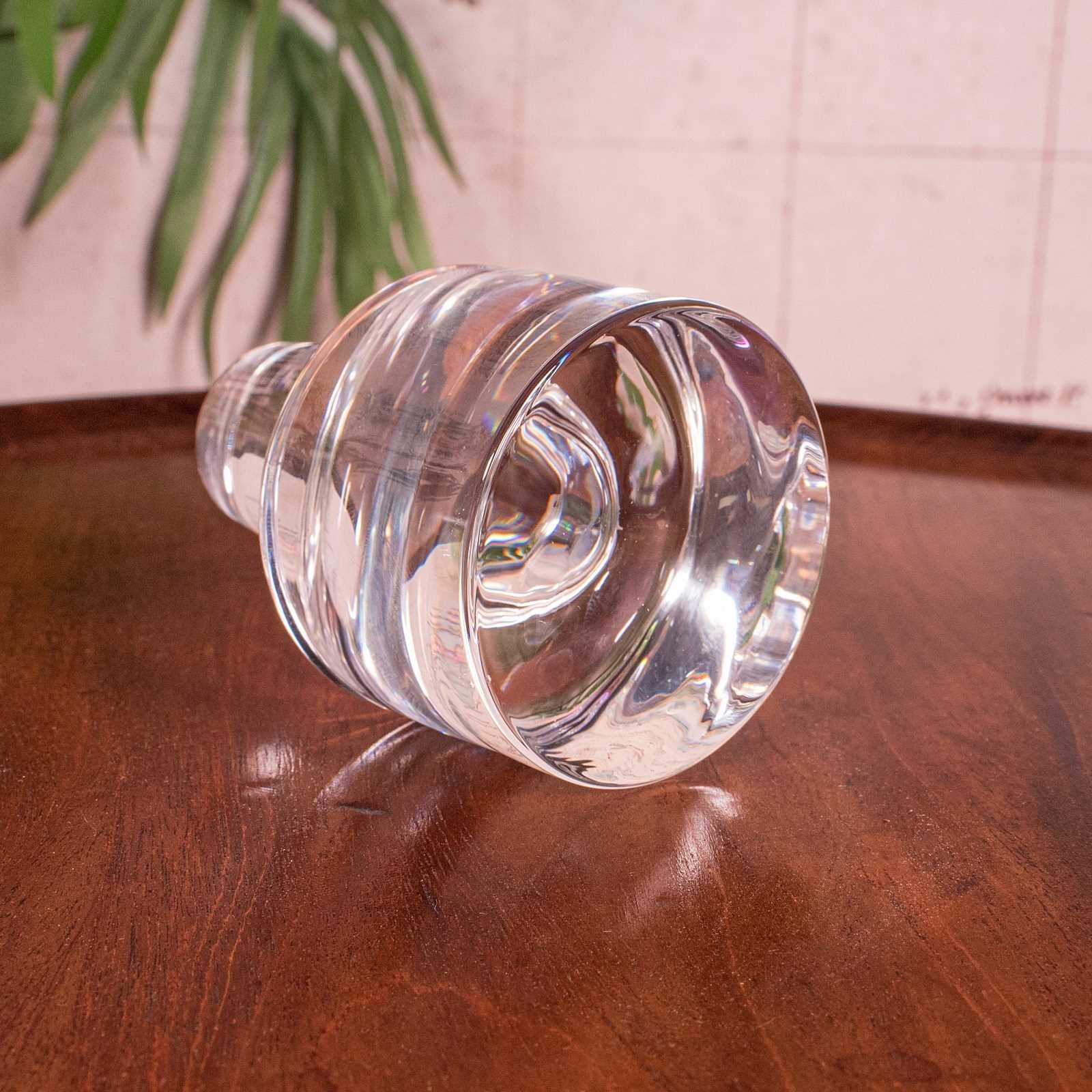 A delightful example of late Art Deco glassware, this English glass decanter embodies the elegance and precision of mid century design — a striking statement piece for the discerning collector or home entertainer. Delivered ready for the home.