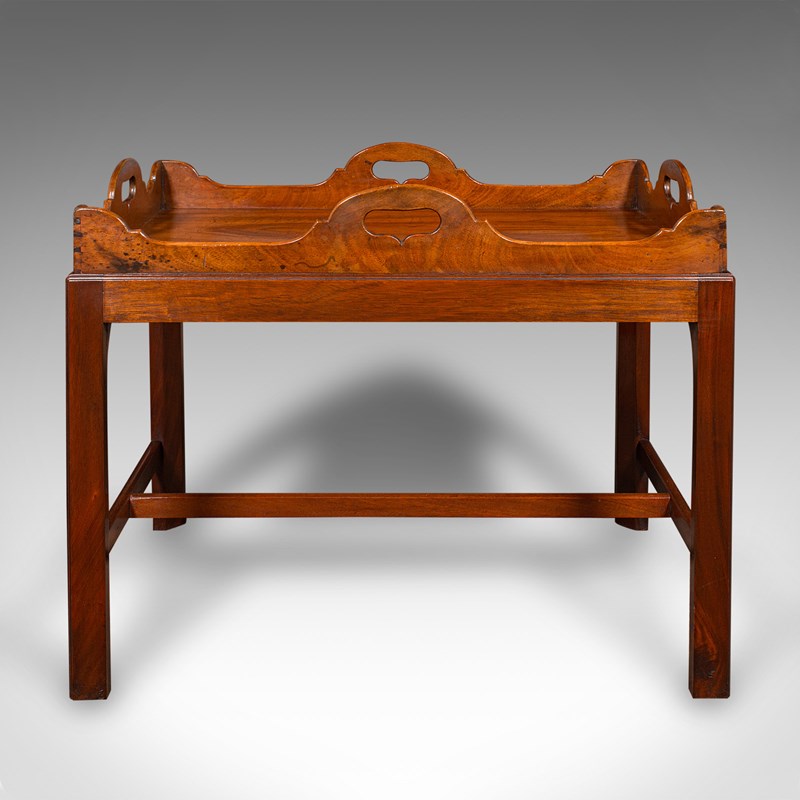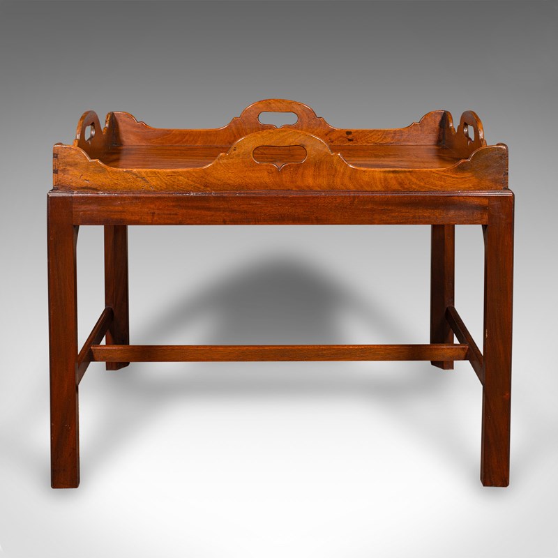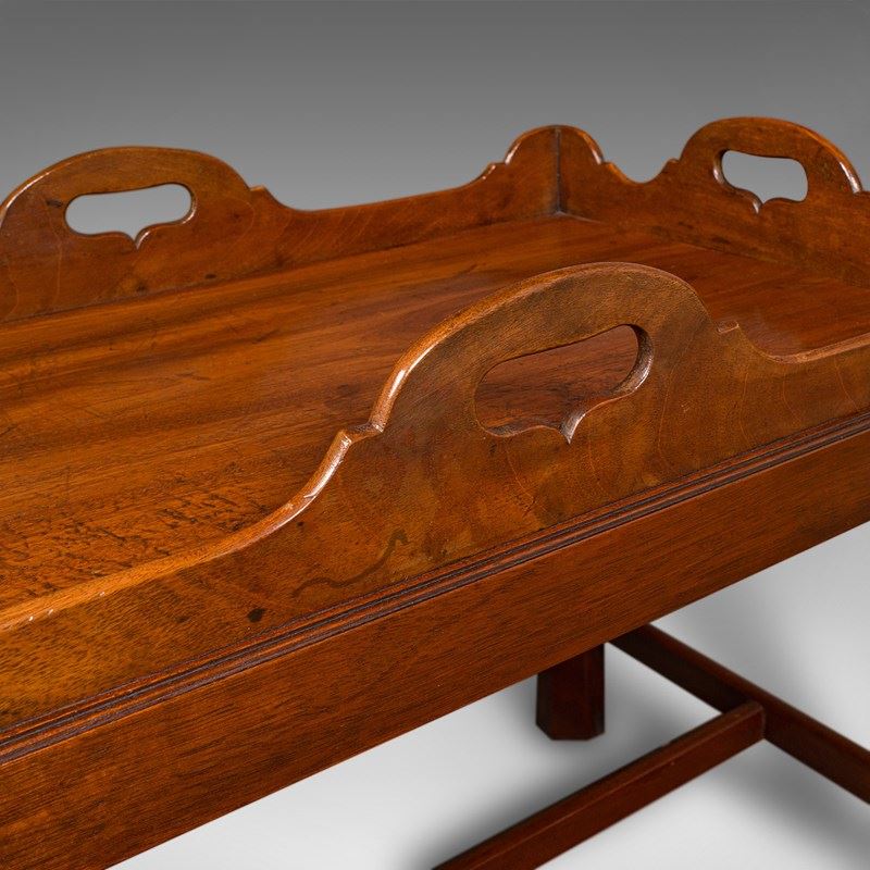 A delightful example of period butler’s furniture, this mahogany serving tray and stand brings practicality and classic style to any setting. Solid joints and construction, delivered ready for the home.