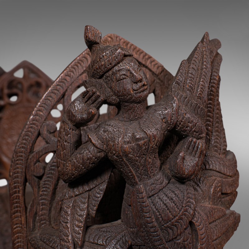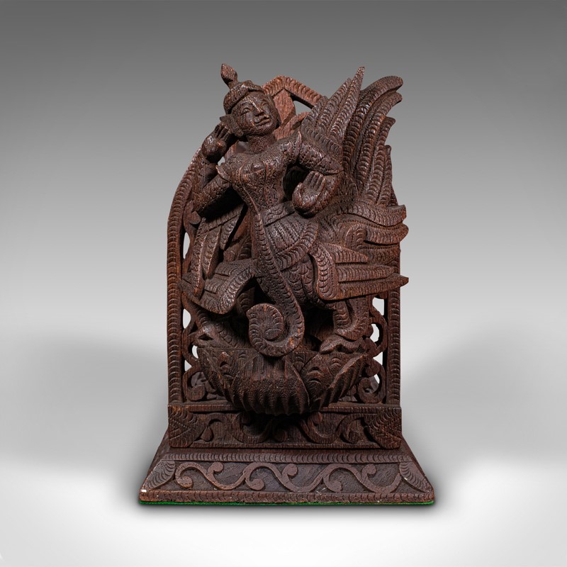 This is a delightful vintage carved book slide, with distinctive deity figures. Offering appeal to bibliophiles and collectors, delivered polished and ready to display.