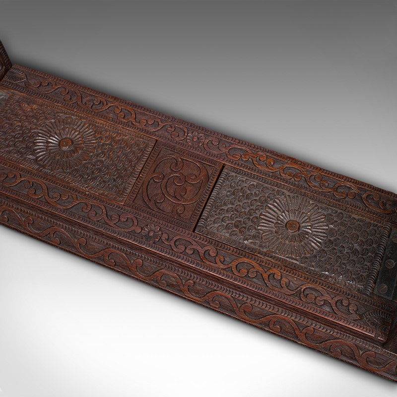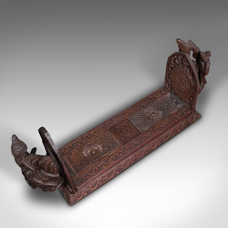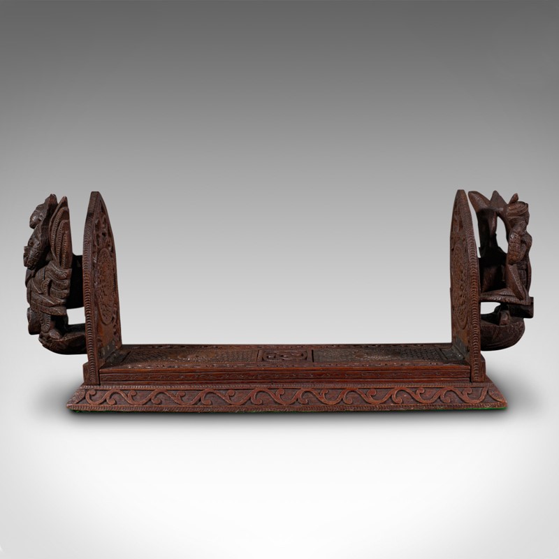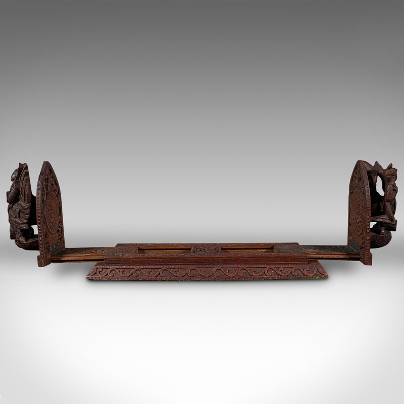 Vintage Carved Book Slide, Balinese, Hardwood, Library Stand, Mid Century, 1960