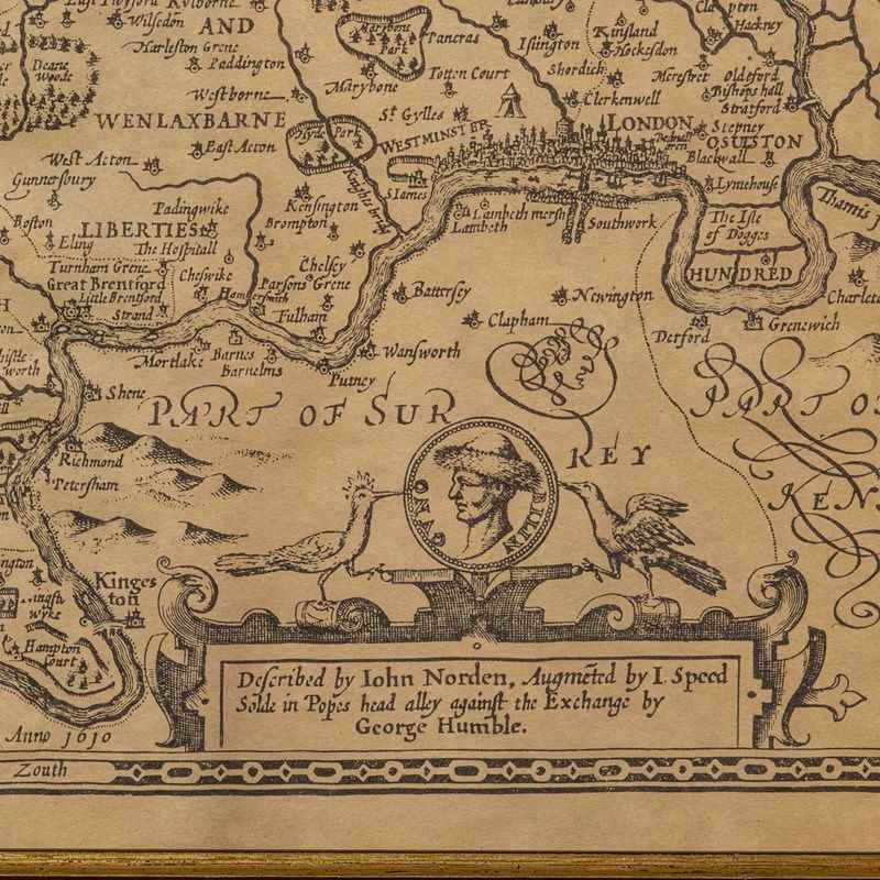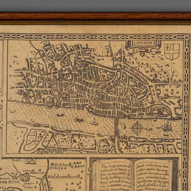 Vintage County Map, Middlesex, English, Framed 16Th Century Print, John Norden