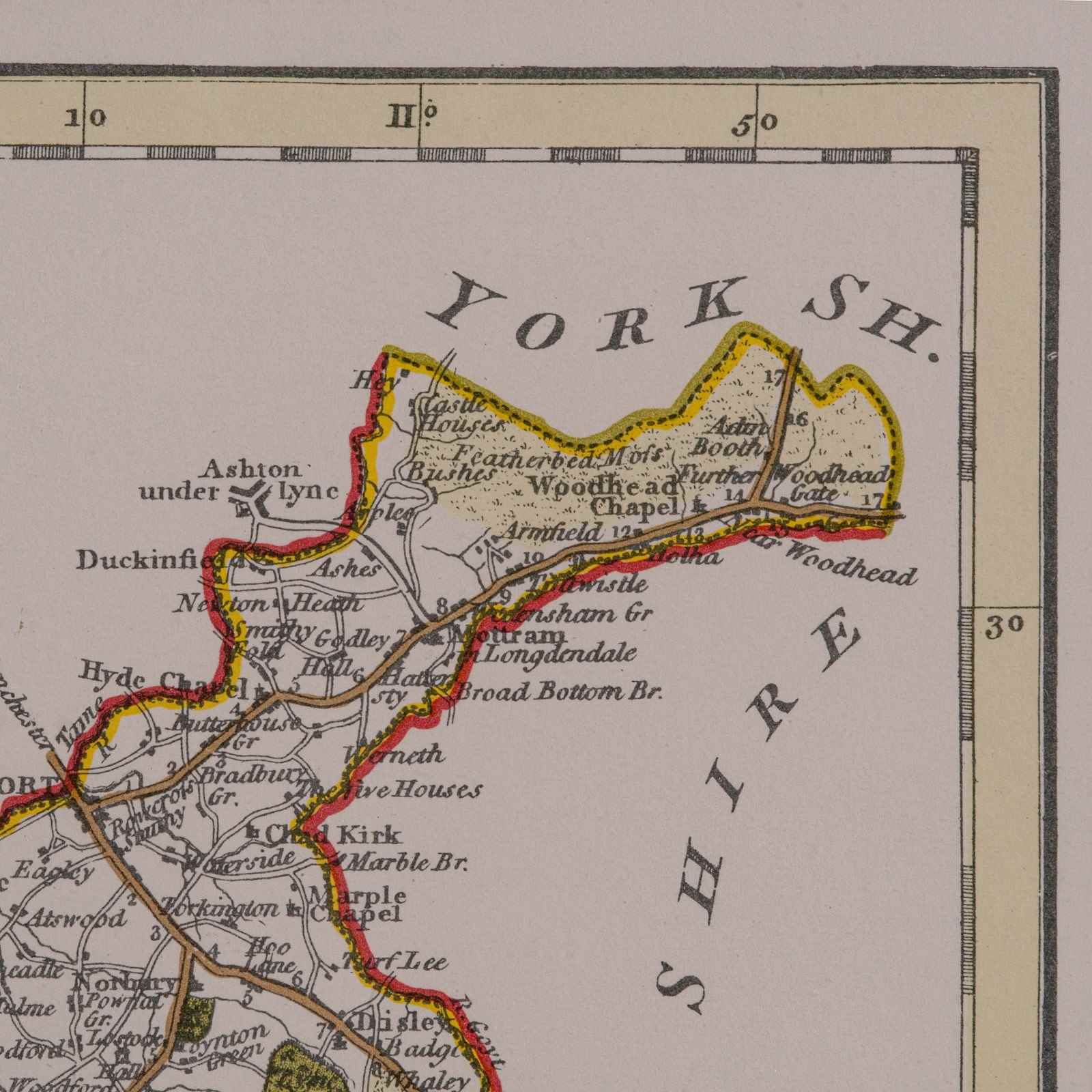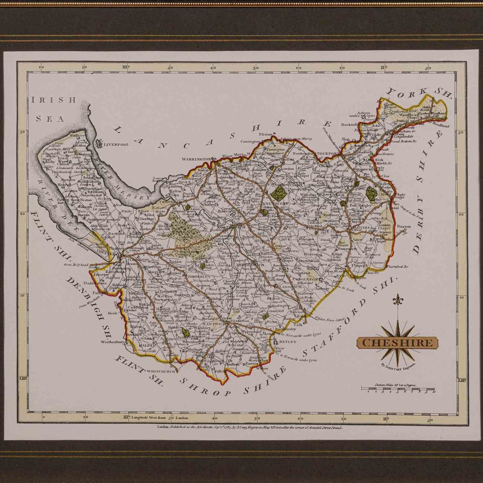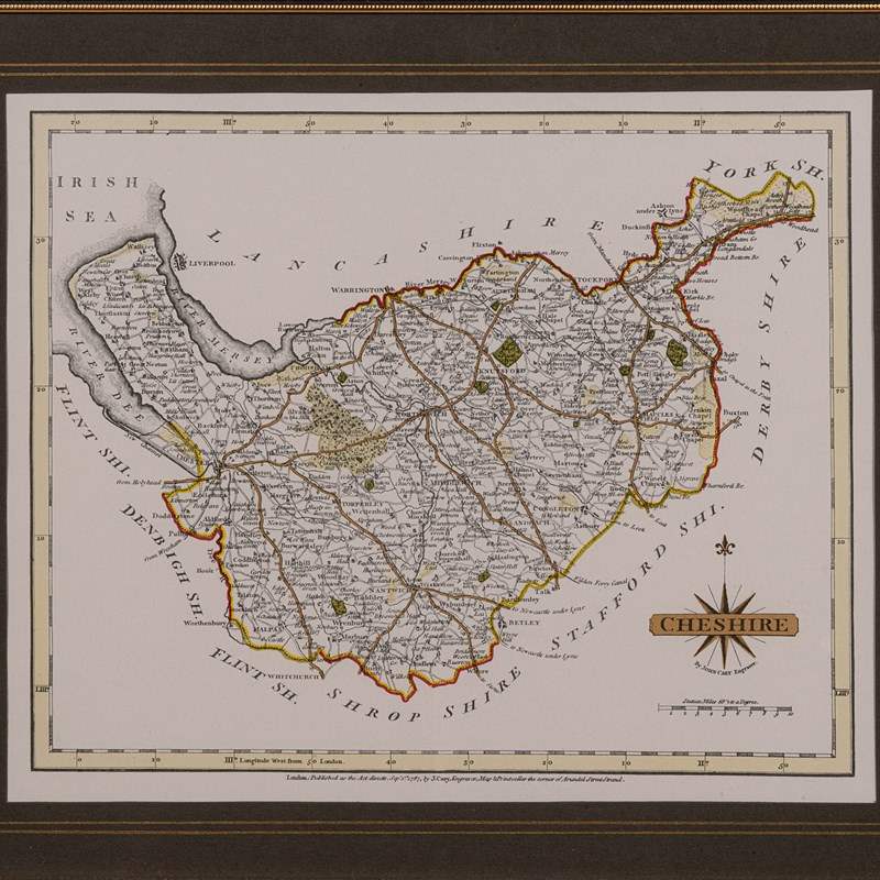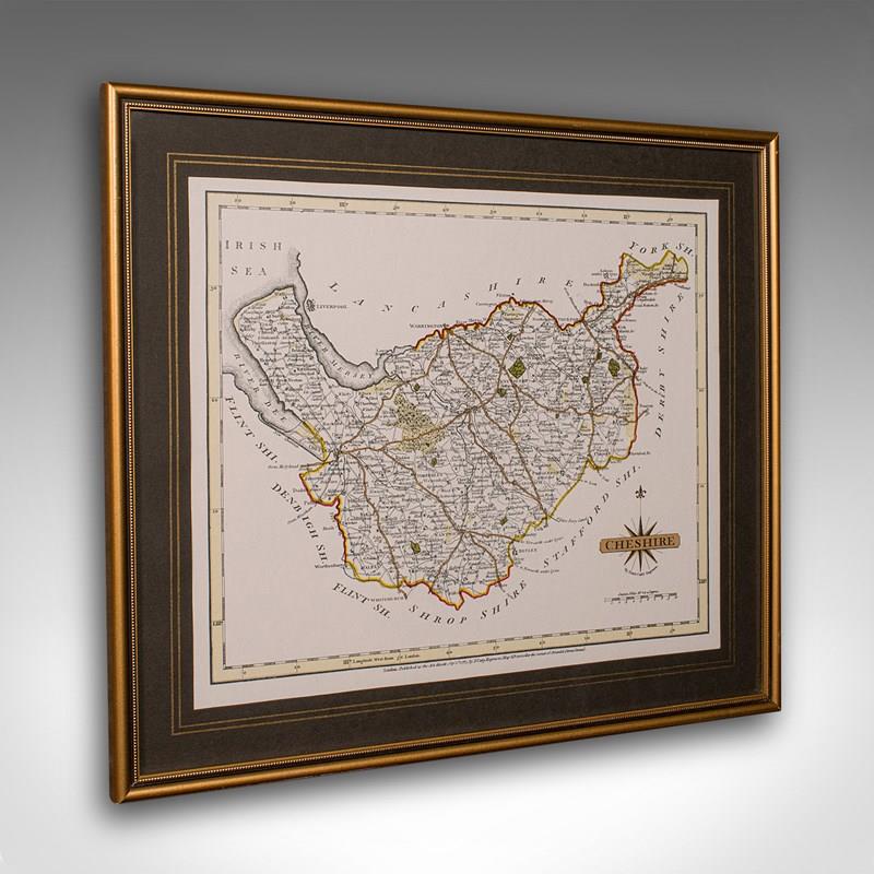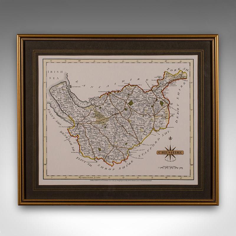 Vintage County Map Of Cheshire, English, After John Cary, Cartography Interest