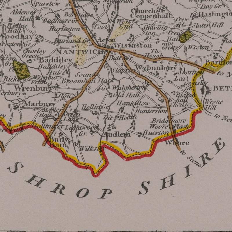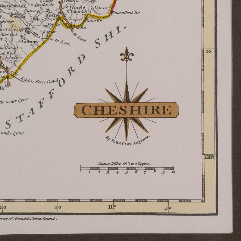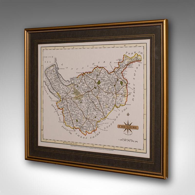 This is a vintage Cheshire map, a fine reproduction of John Cary’s late 18th century cartography, and presented within a smart glazed frame.